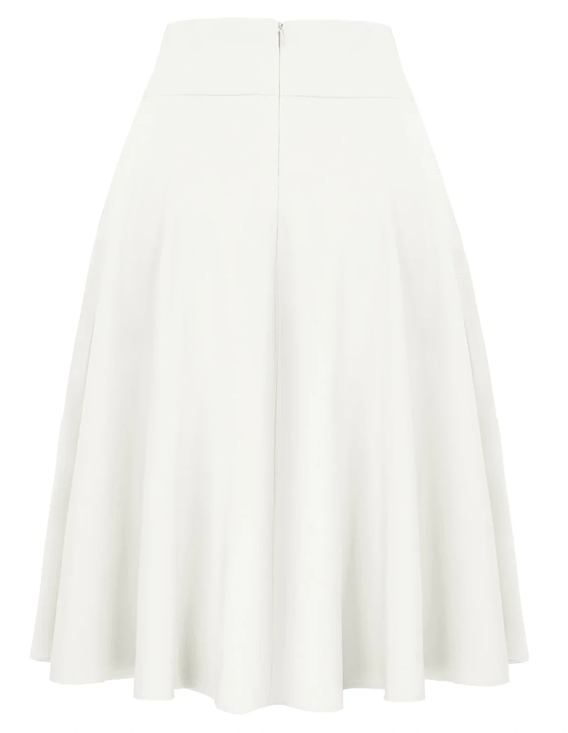 Women's below knee length skirt. Twill fabric for comfortable fit, pleated skater midi skirt