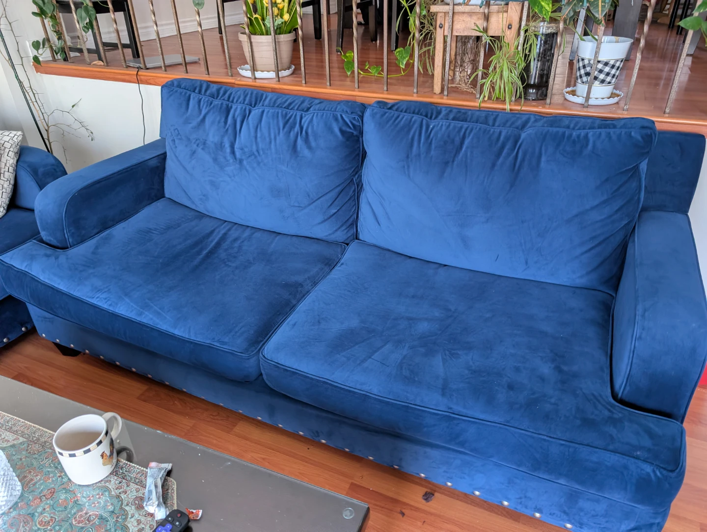 Buy & SellBlue Velvet Sofa 4-seatBlue Velvet Sofa 4-seat$50Moving sale - Selling a comfy blue velvet sofa! It's in great condition and would look lovely in any living room!ConditionLike newWHERE TO MEET184 Song MeadowayView MapSELLERverifiednikaChurch and Wellesley1267 reviews0 chats·0 favorites·49 viewsSEND CHAT TO SELLERHi nika! I’m interested in your listing.Hi nika! I’m interested in your listing.Get the Karrot app to chatSign In to chat