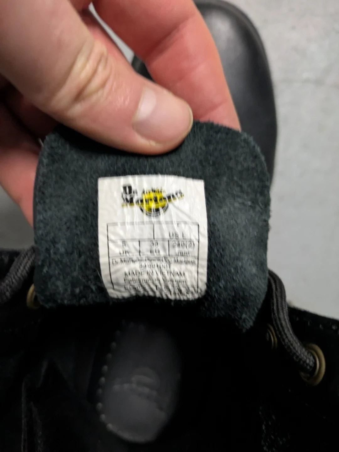 Classic black leather Dr. Martens boots. These boots are made with durable leather and feature the signature air-cushioned sole. Lace-up closure for a secure fit. Great for everyday wear! US size 7