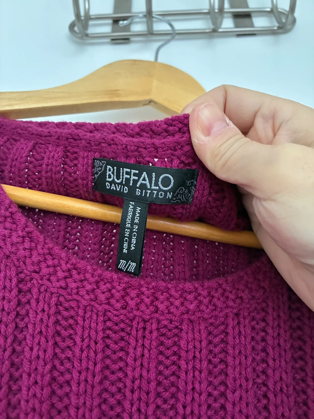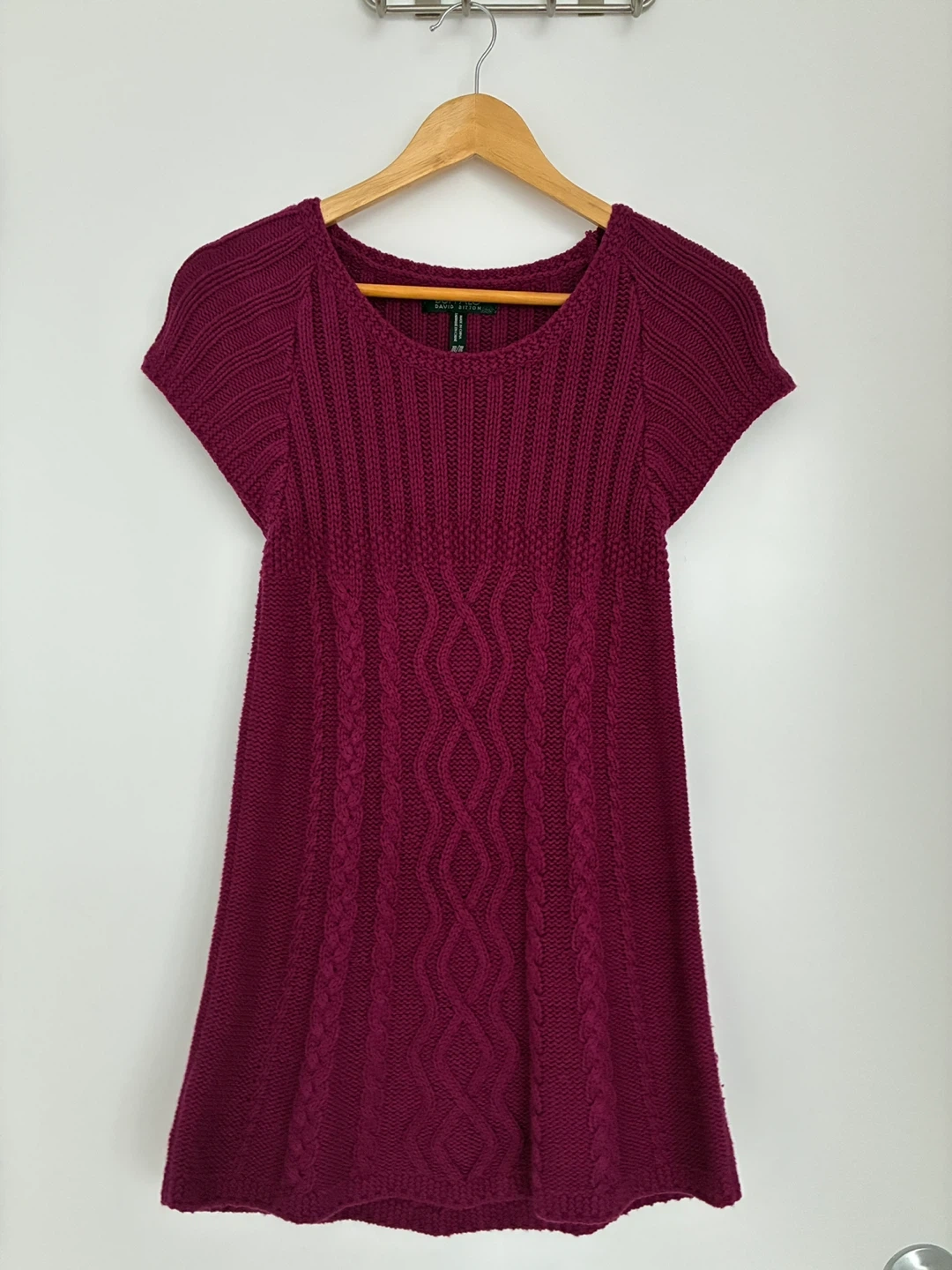 Buffalo David Bitton knit sweater dress in a beautiful magenta colour. It's a size medium. The dress is made with 58% cotton, 35% acrylic, 2% nylon, and 1% spandex.