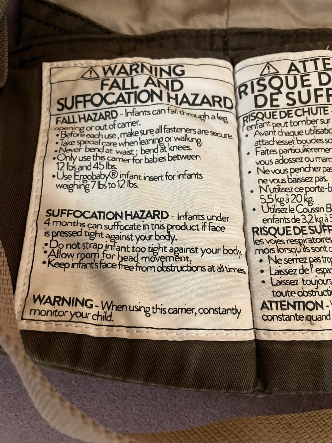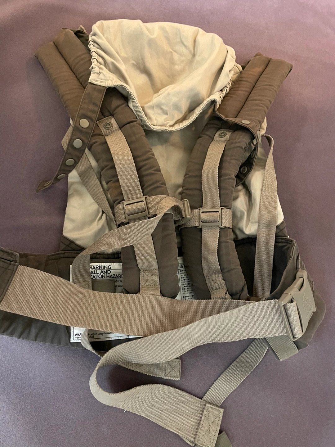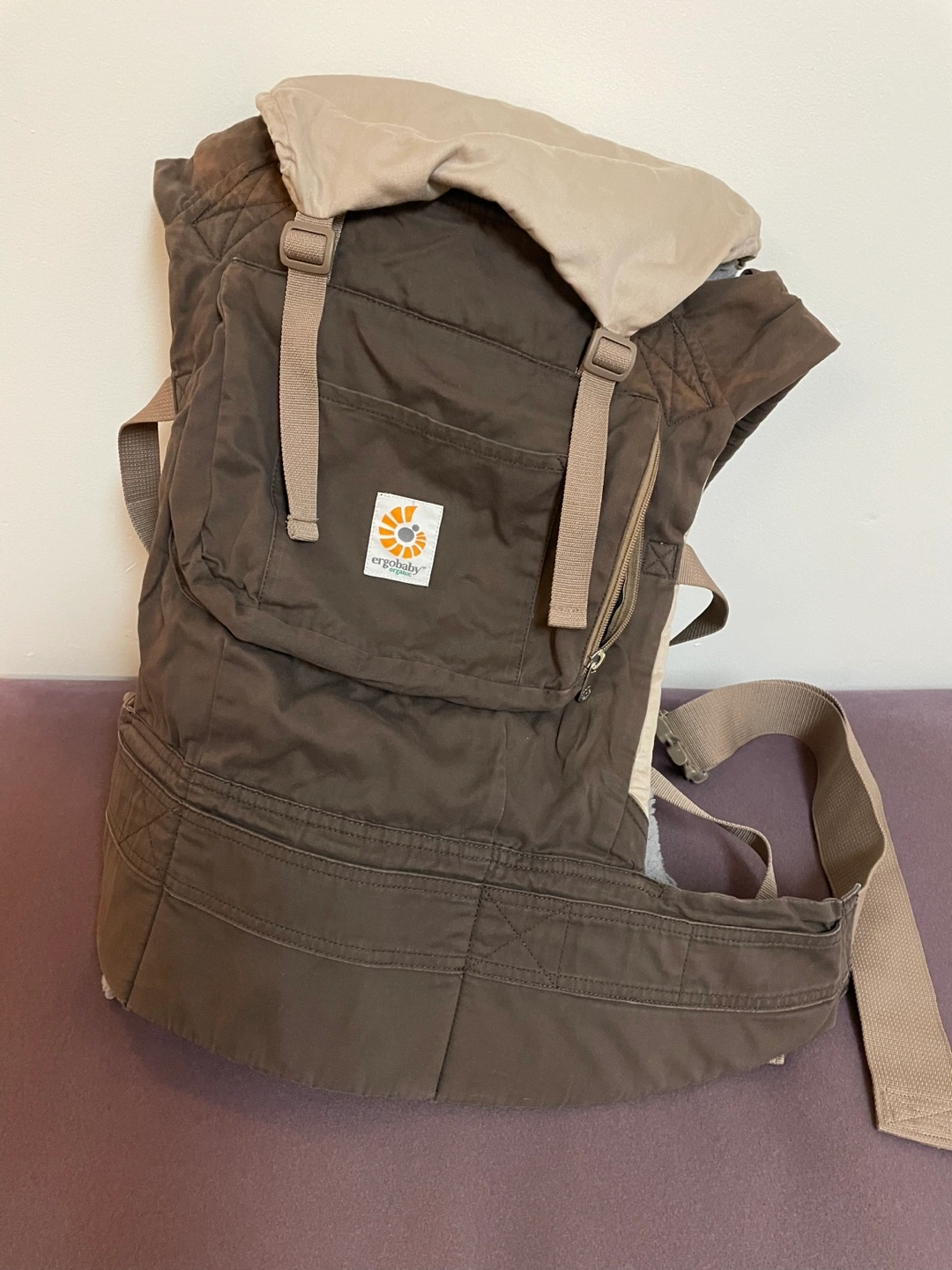 Used Ergobaby Original baby carrier. Brown colour. Includes infant insert. Adjustable straps. Trusted & loved for my 3 kids!