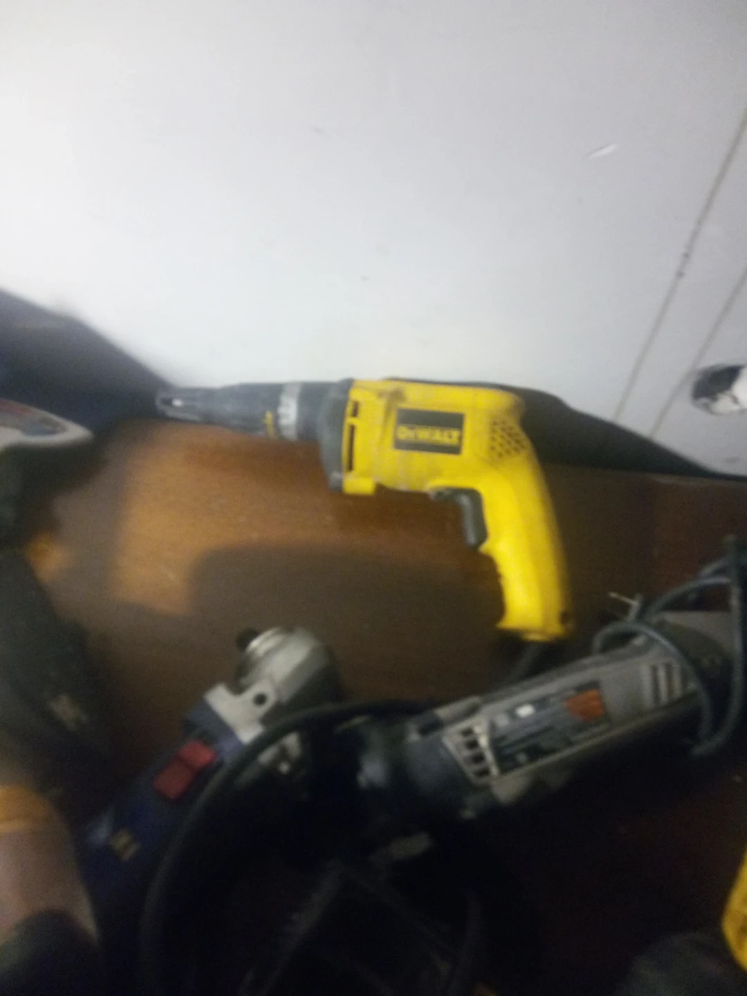 This is a DEWALT DW255 drywall screwgun. It's a yellow power tool designed for driving screws. It has a variable speed trigger and a depth adjustment collar.