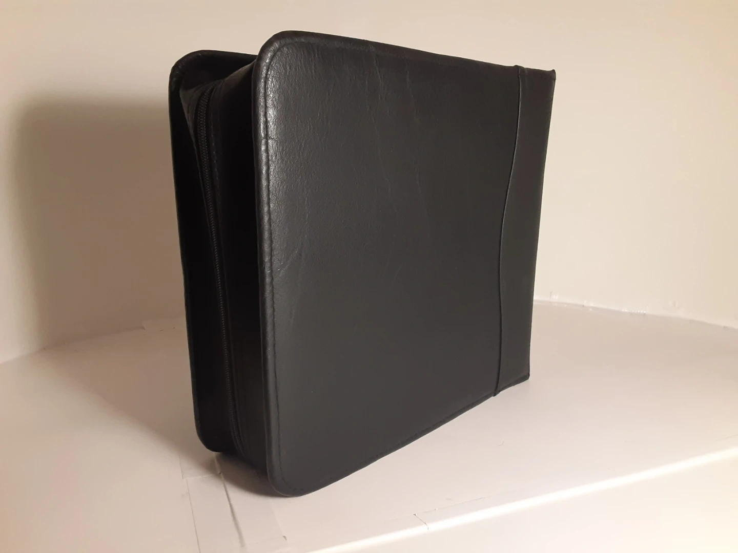 Case Logic - black faux leather CD Case with 26 pages and 208 slot capacity. In great condition, with very minor damage from use throughout. Perfect for organizing your collection in style.