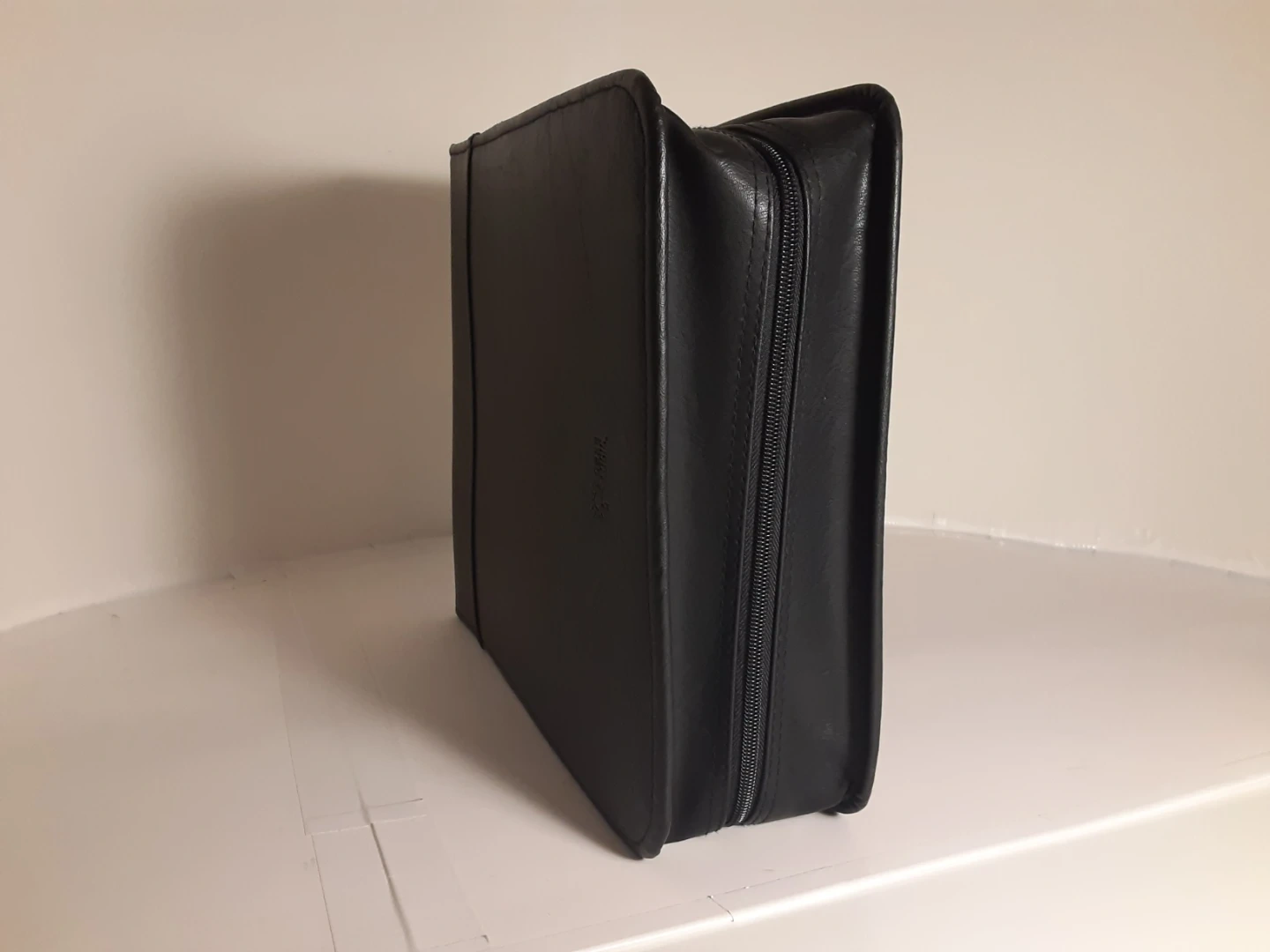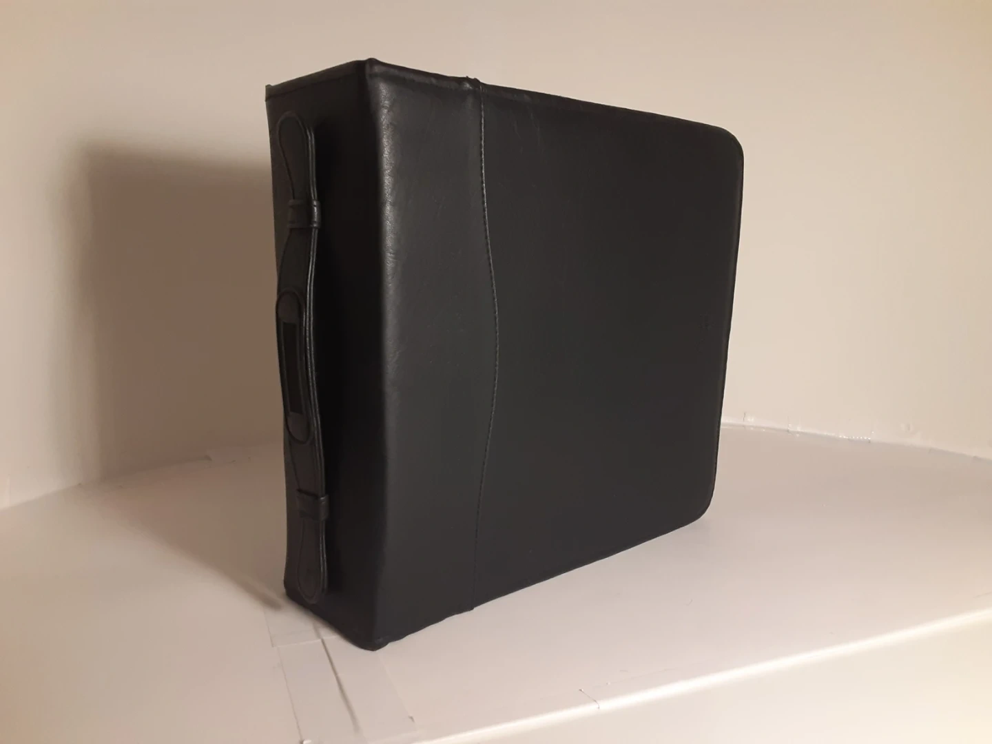 Case Logic - black faux leather CD Case with 26 pages and 208 slot capacity. In great condition, with very minor damage from use throughout. Perfect for organizing your collection in style.