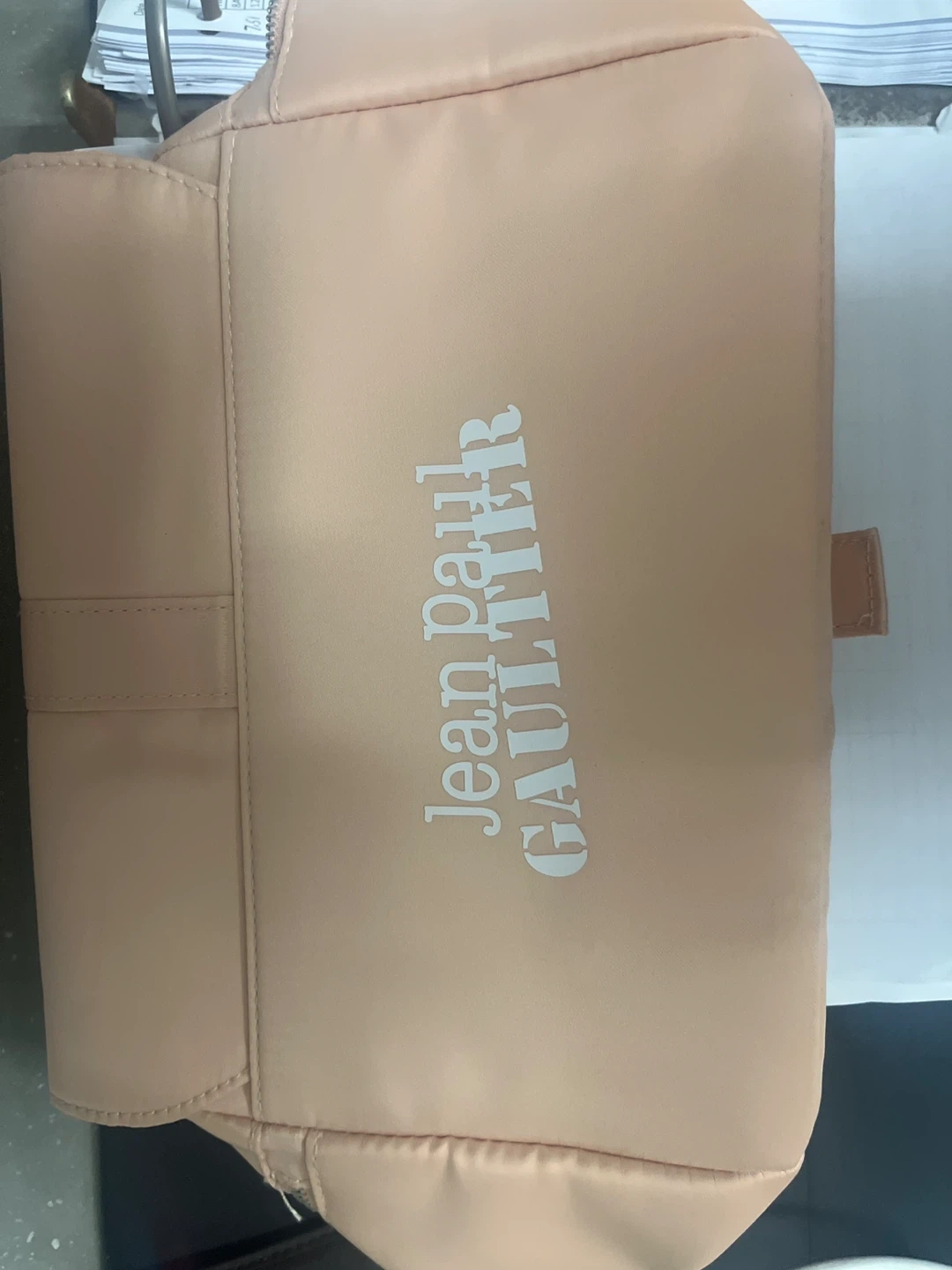 This is a Jean Paul Gaultier makeup bag in a lovely peach colour. It's in great condition and perfect for storing your cosmetics or toiletries!