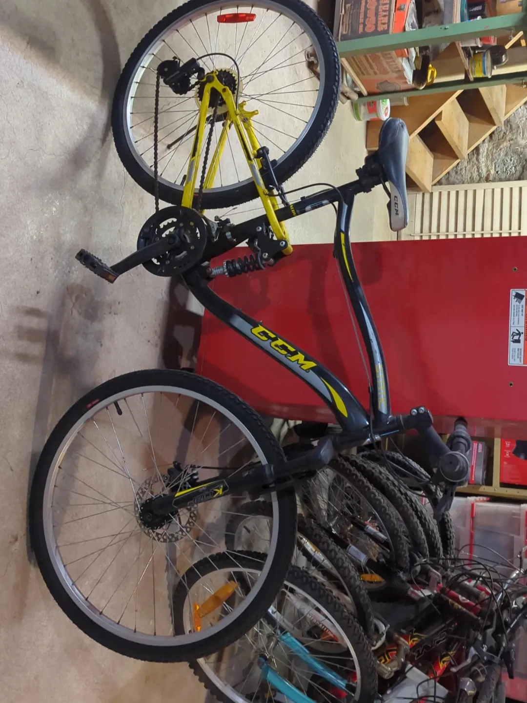 Buy & SellCCM Mountain BikeCCM Mountain Bike$70CCM mountain bike with front and rear suspension. Disc brakes on front wheel. Yellow and grey frame. (Price is negotiable need to sell soon)WHERE TO MEETdowntown Tim HortonsView MapSELLERMiaCentral Hamilton312 reviews0 chats·0 favorites·4 viewsSEND CHAT TO SELLERHi Mia! I’m interested in your listing.Hi Mia! I’m interested in your listing.Get the Karrot app to chatSign In to chat