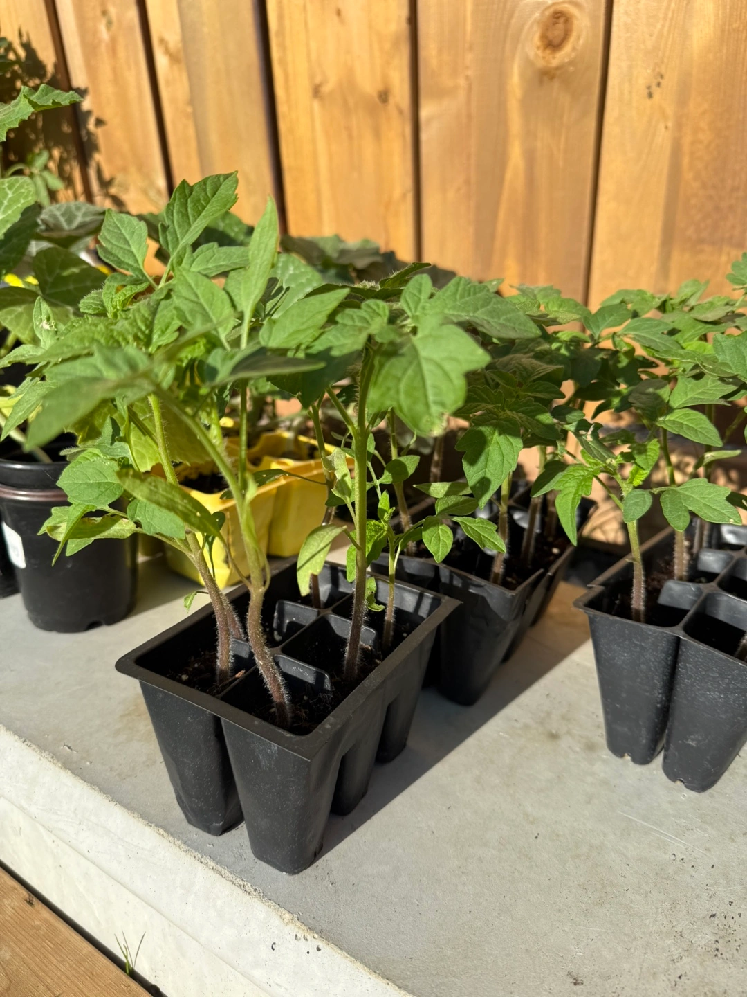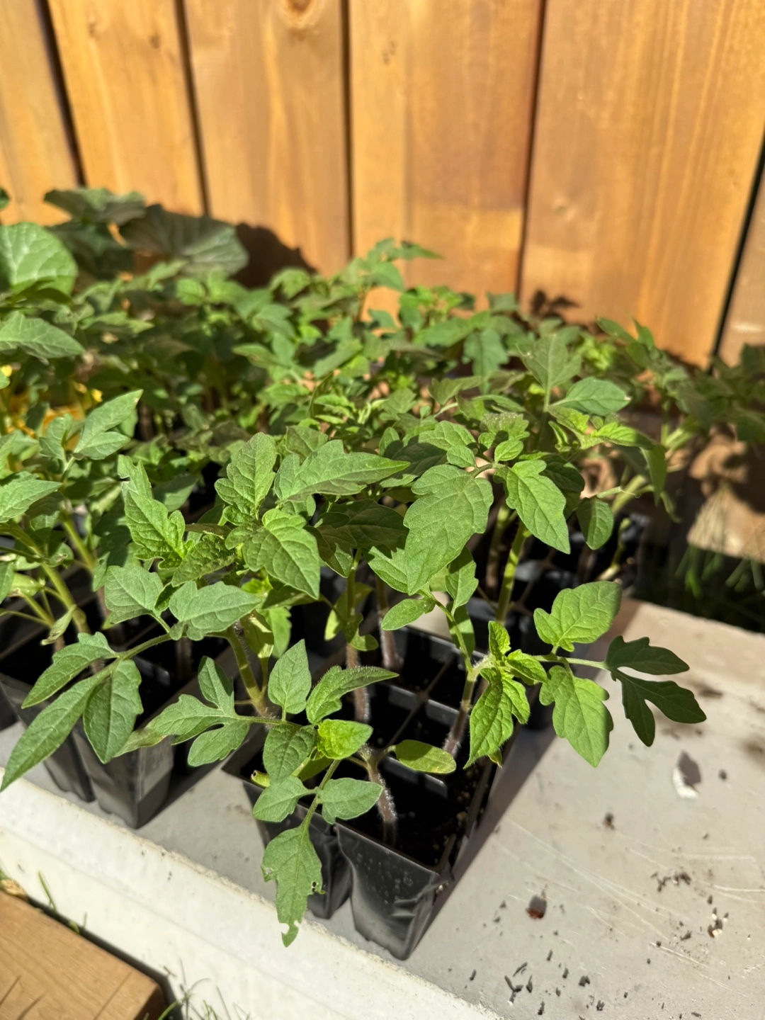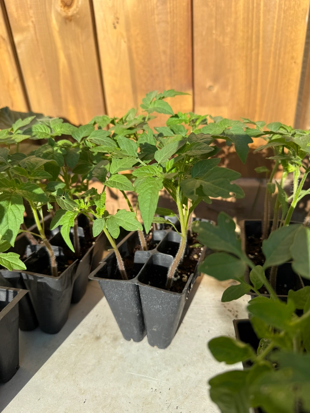I have some healthy tomato seedlings ready for your garden! They are growing well and are ready to be transplanted into larger pots or directly into your garden bed