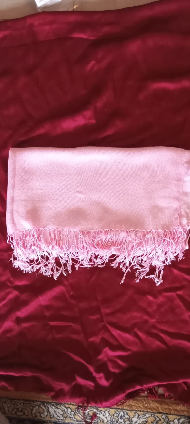 Bijoux Terner pashmina scarf in a lovely pink shade. It's soft and has fringed edges. This scarf adds a nice touch to any outfit!