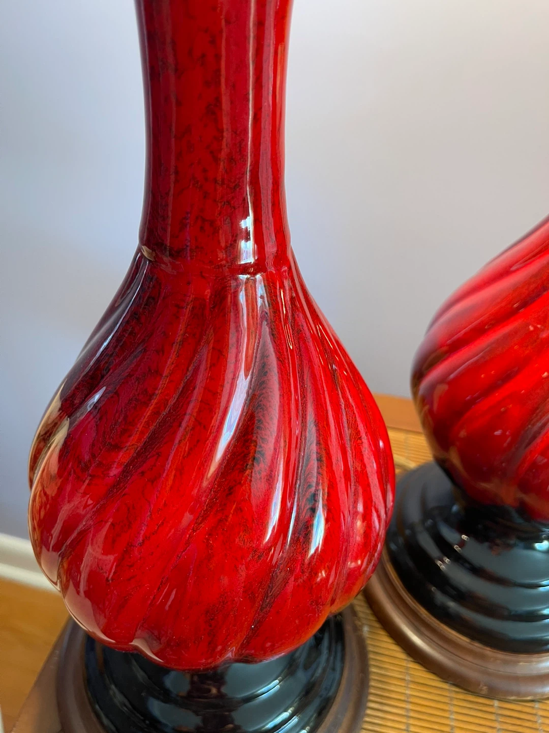 Vintage Red & Black Swirl Table Lamps - Set of 2
