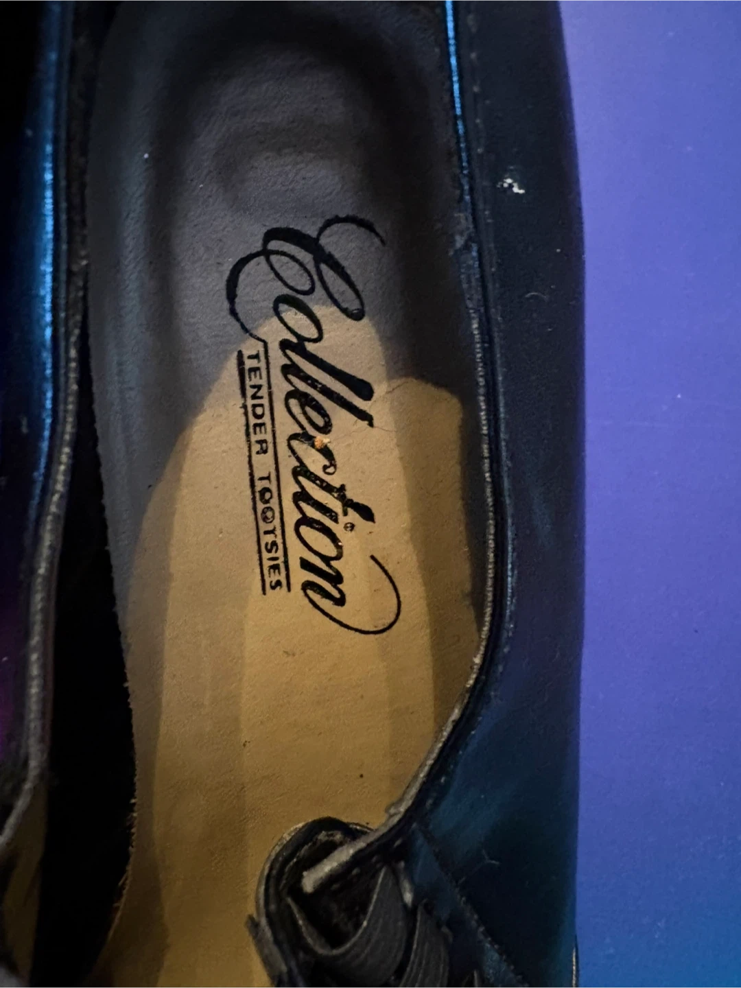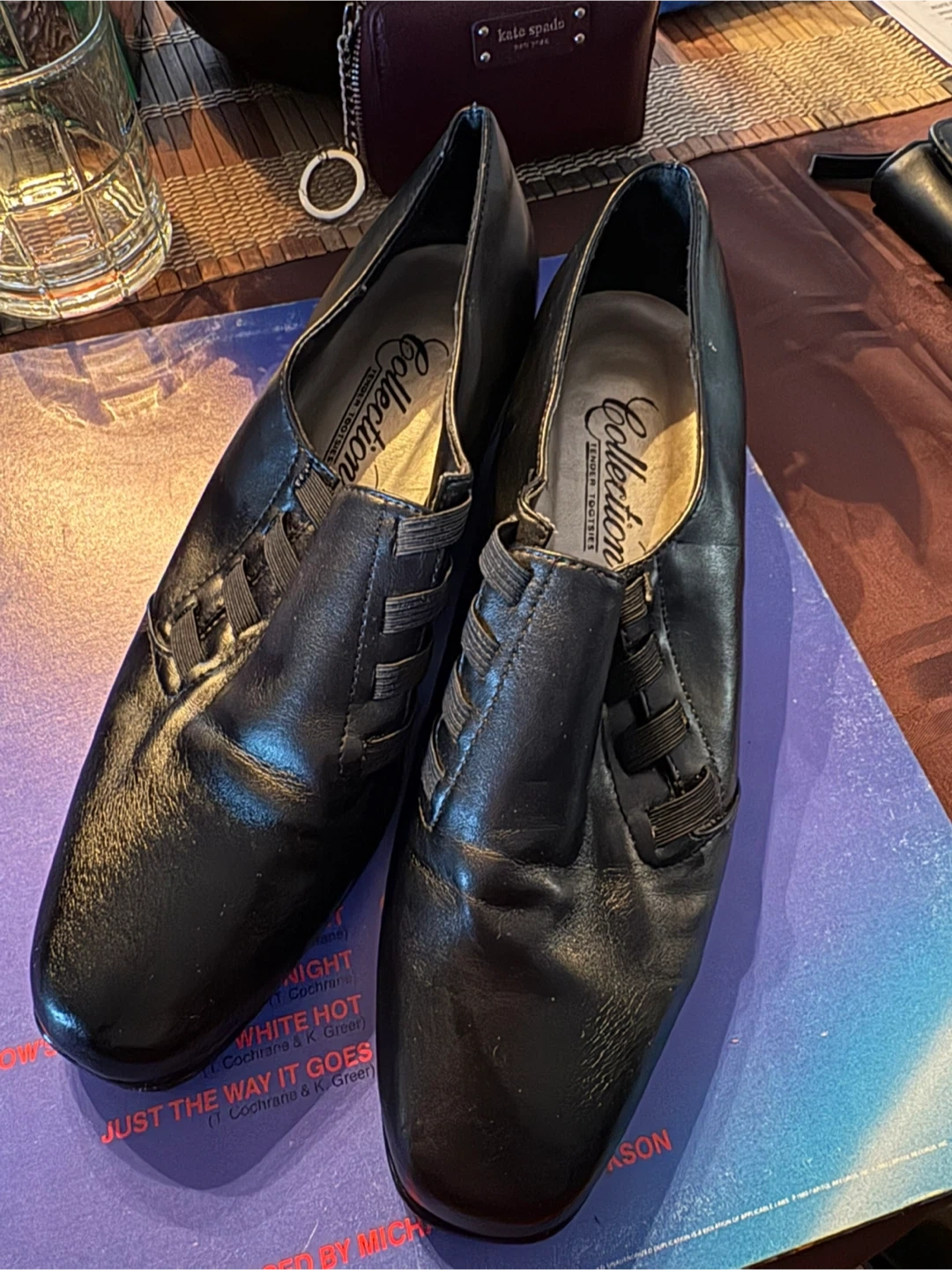 Black loafers from Collection by Tender Tootsies. Size 7M. These shoes are made in Vietnam. They feature elastic gores for easy on and off.