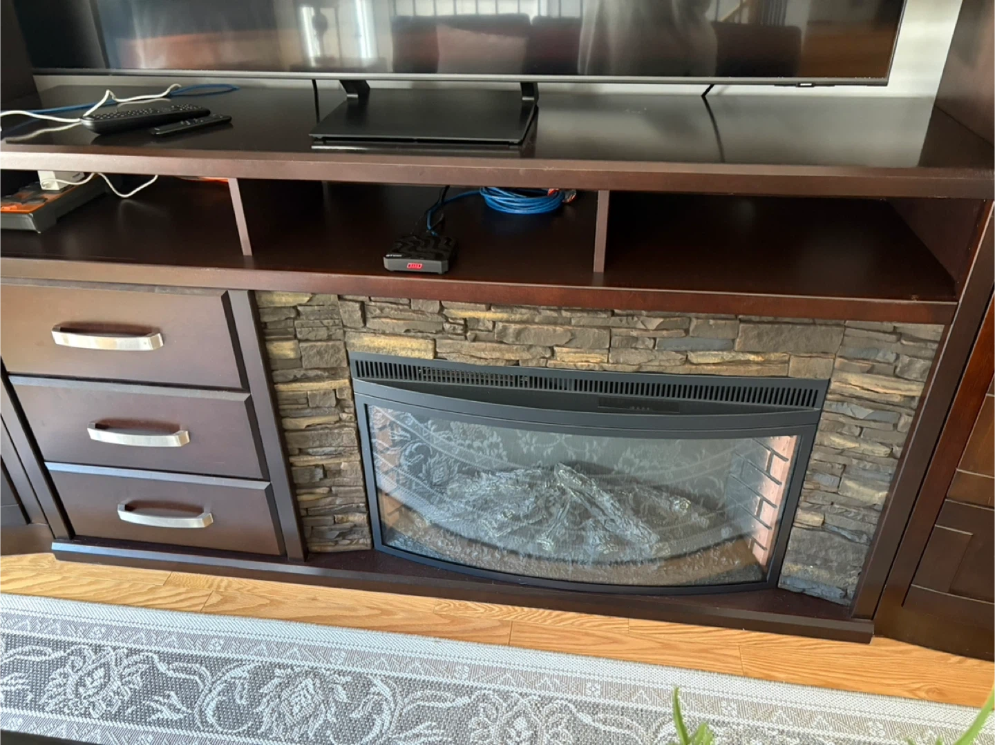 Dark Wood Entertainment Unit with Electric Fireplace