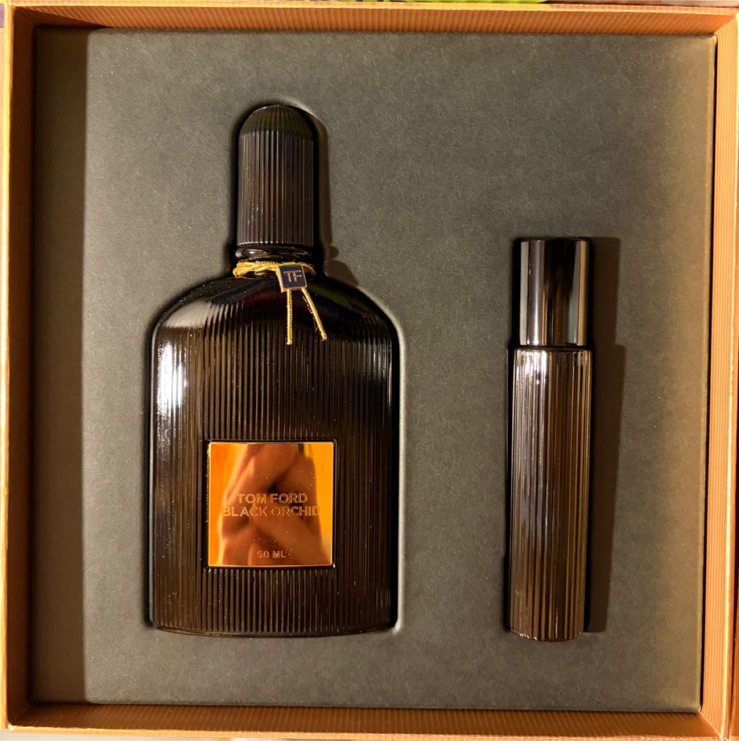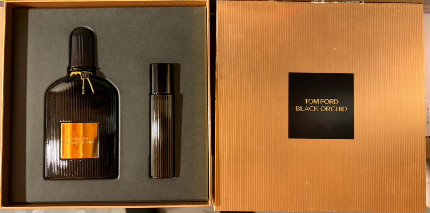 Selling a Tom Ford Black Orchid Eau de Parfum 2 Piece Gift Set. It’s brand new in box. This Tom Ford Black Orchid gift set includes a 50ml Eau de Parfum spray and a 10ml travel spray. It's presented in a sleek black ribbed bottle with gold accents. A lovely fragrance for any occasion!