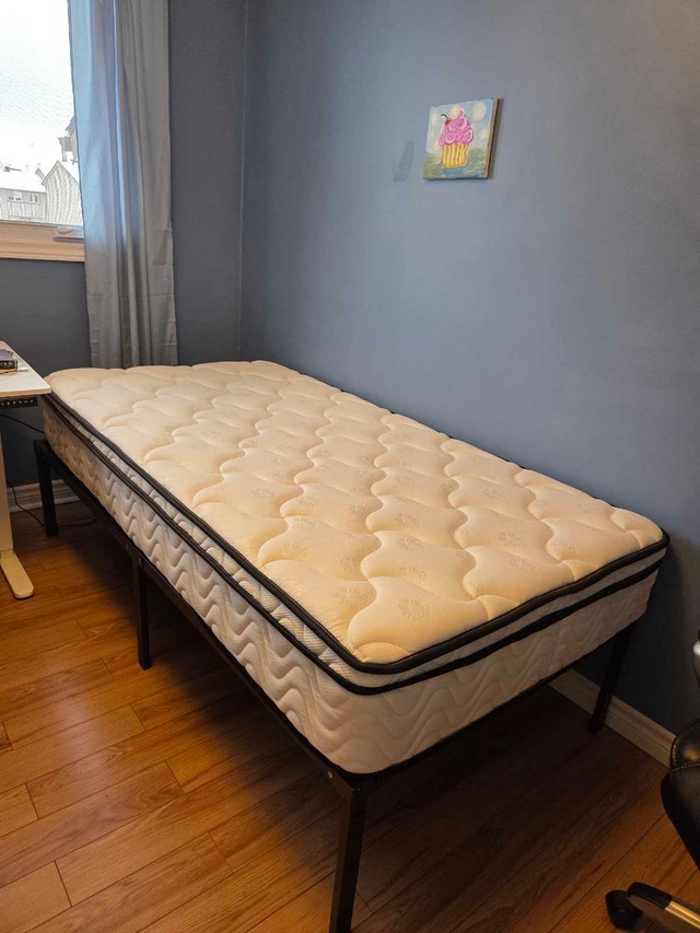 I am selling a twin mattress in new condition, perfect for a small bedroom or guest room. It's supportive and comfortable and has been well taken care of. I am listing it at a great price, since I am moving soon and trying to get rid of things quickly. If the ad is up, it's available!