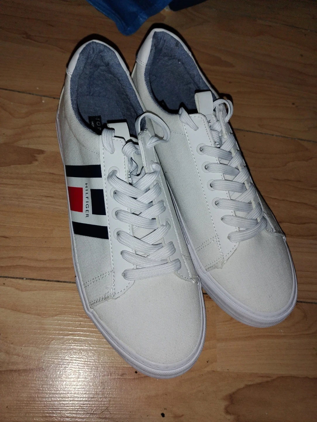 Classic white Tommy Hilfiger sneakers. Lace-up closure for a secure fit. Size 10 M.