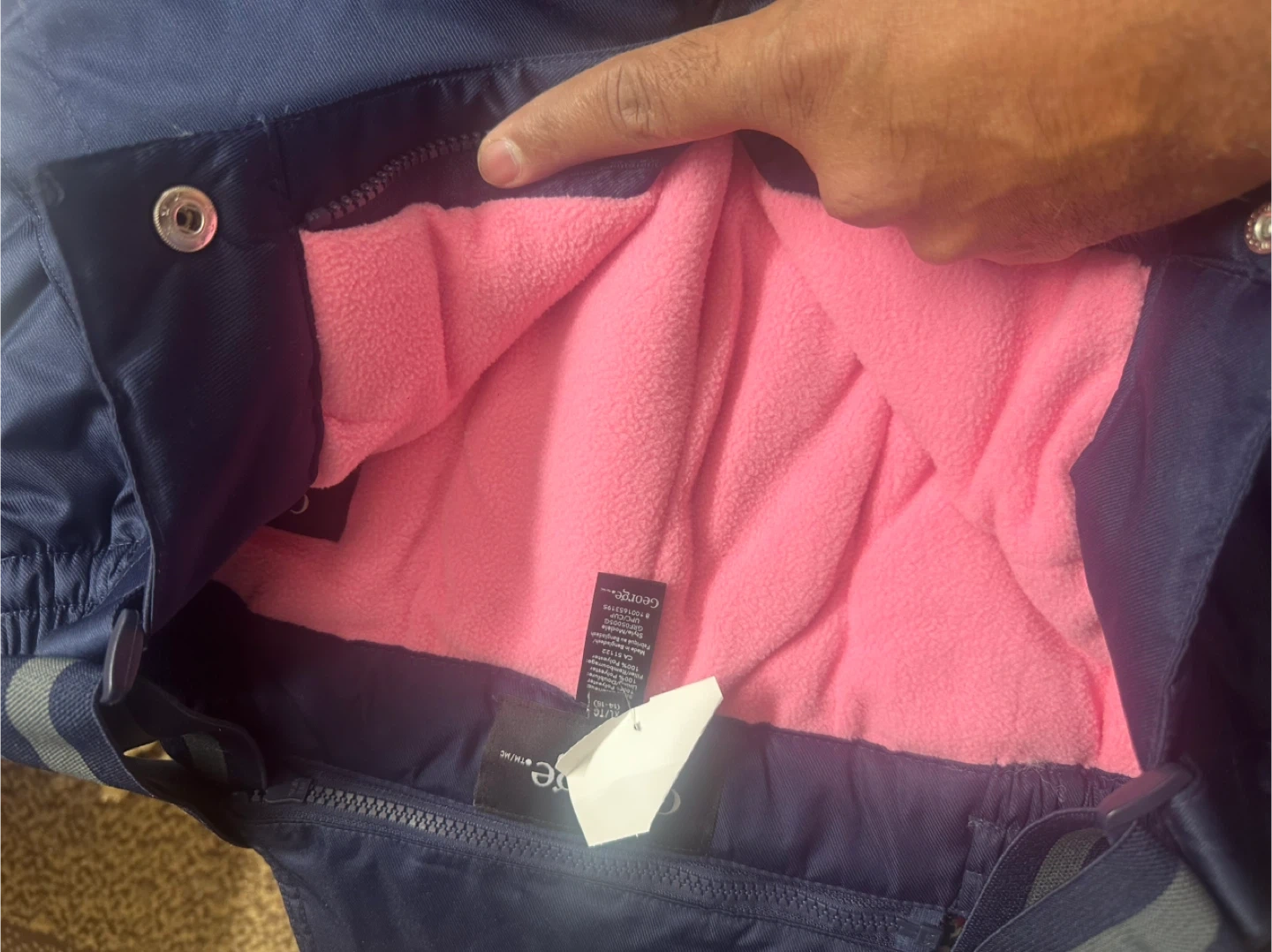 Here are a pair of George snow pants, perfect for keeping warm this winter! They are a size XL (14-16) and feature a cozy pink lining.