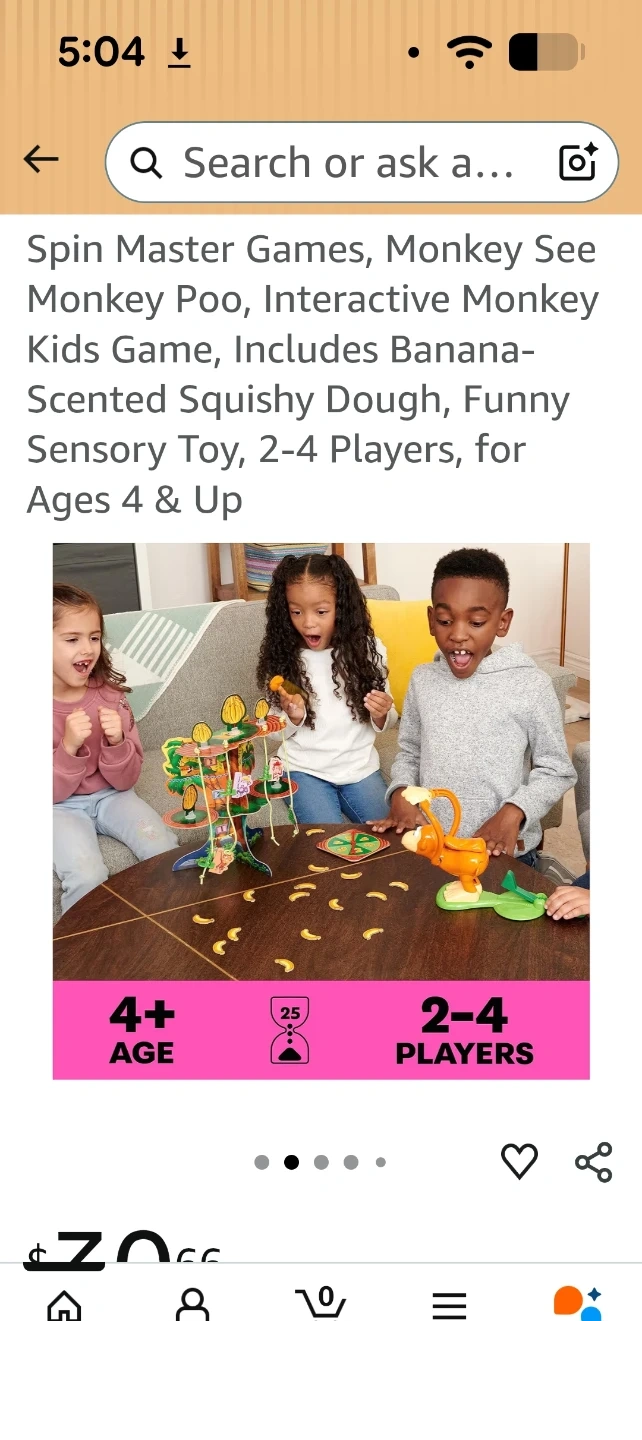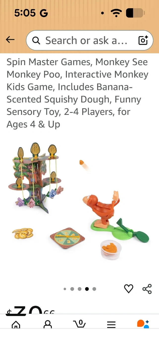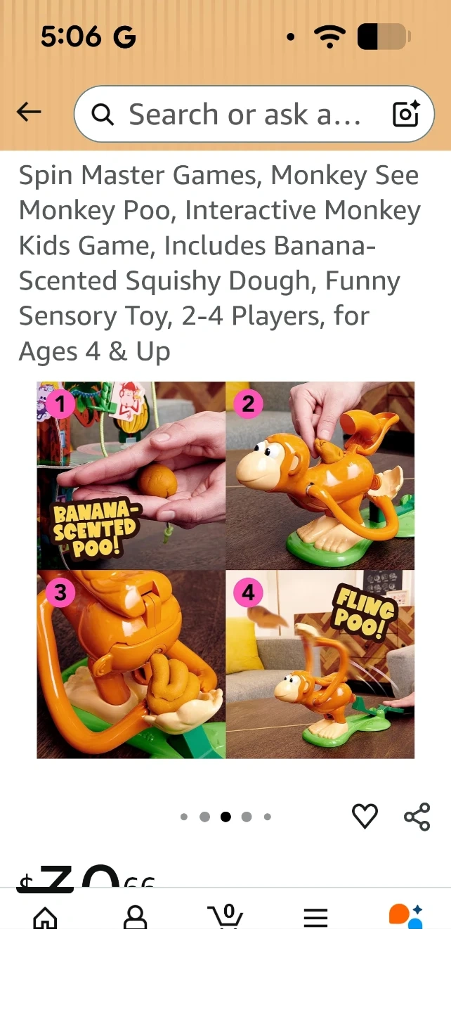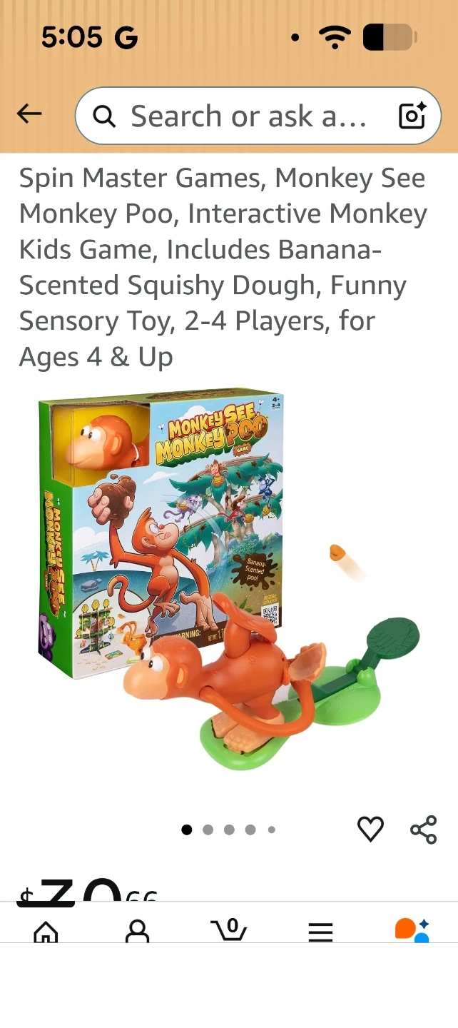 This is the Monkey See Monkey Poo interactive game! It includes banana-scented squishy dough. It's a fun sensory toy for 2-4 players. Recommended for ages 4 and up!