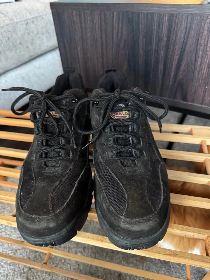These are women's steel toe shoes in a size 9. They offer protection and comfort for work or other demanding activities. Let me know if you're interested!