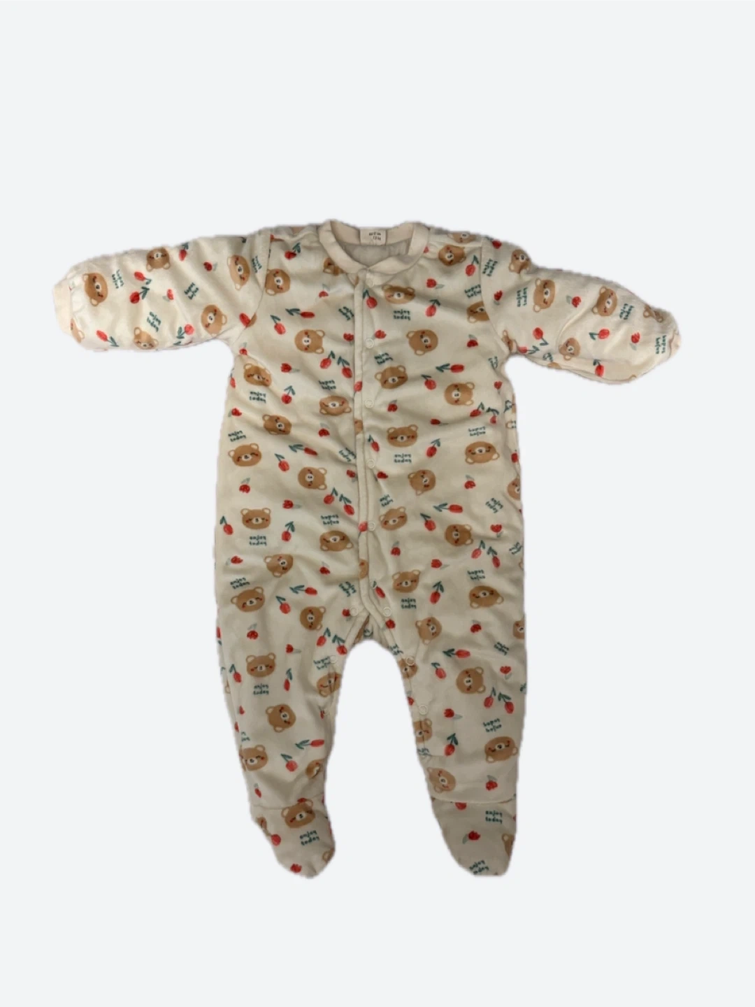 Super cute padded winter baby onesie with an all-over bear and tulip print! It's in great condition and perfect for keeping your little one cozy and warm during winter. Barely used