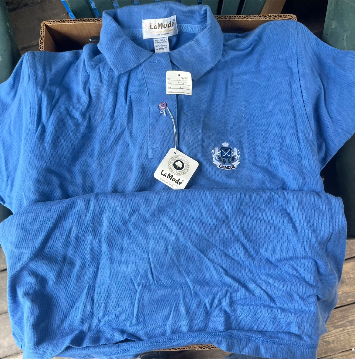It's a size L and made of 100% combed cotton, so it's super comfy. Perfect for a casual day out or a round of golf!