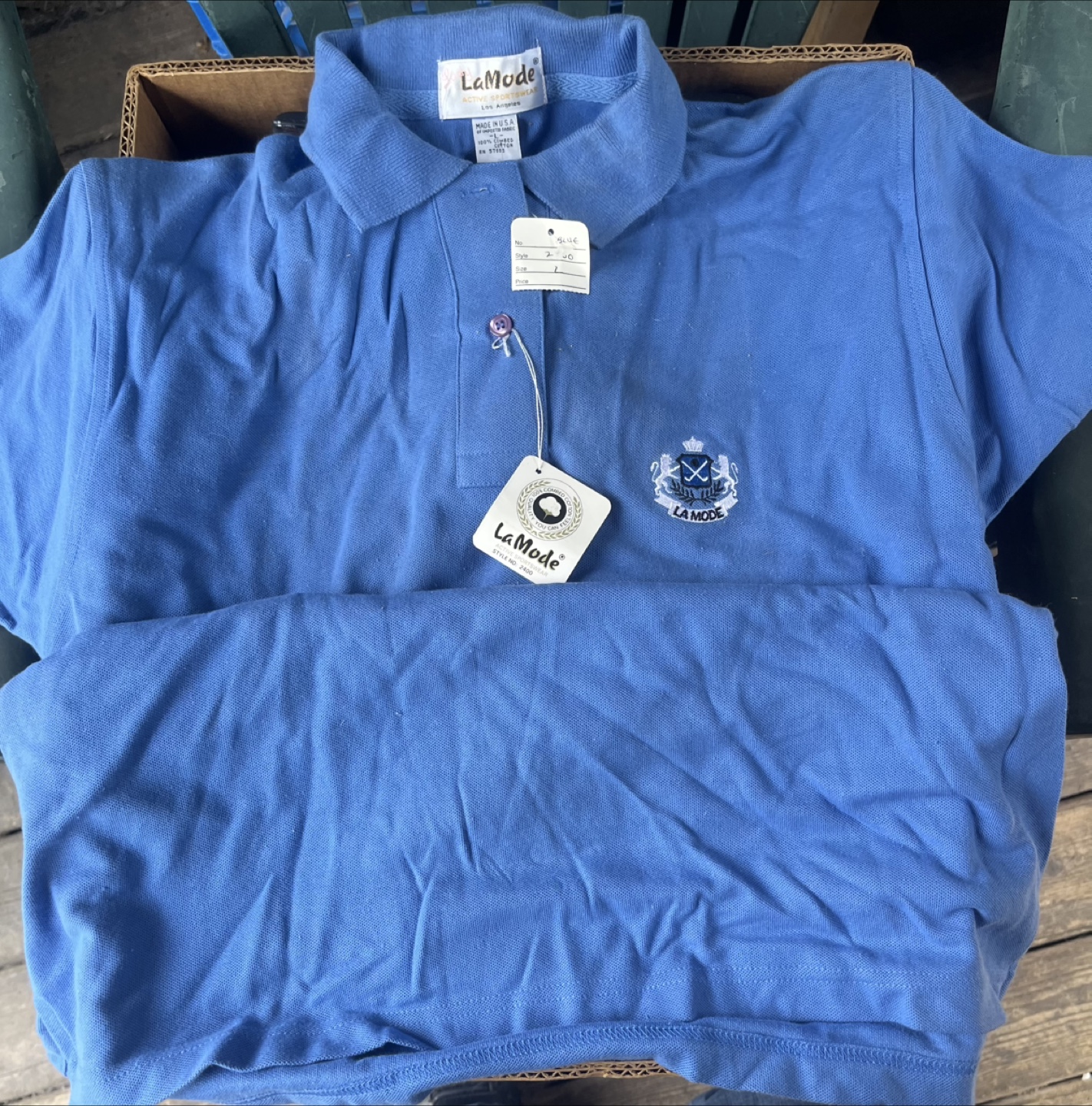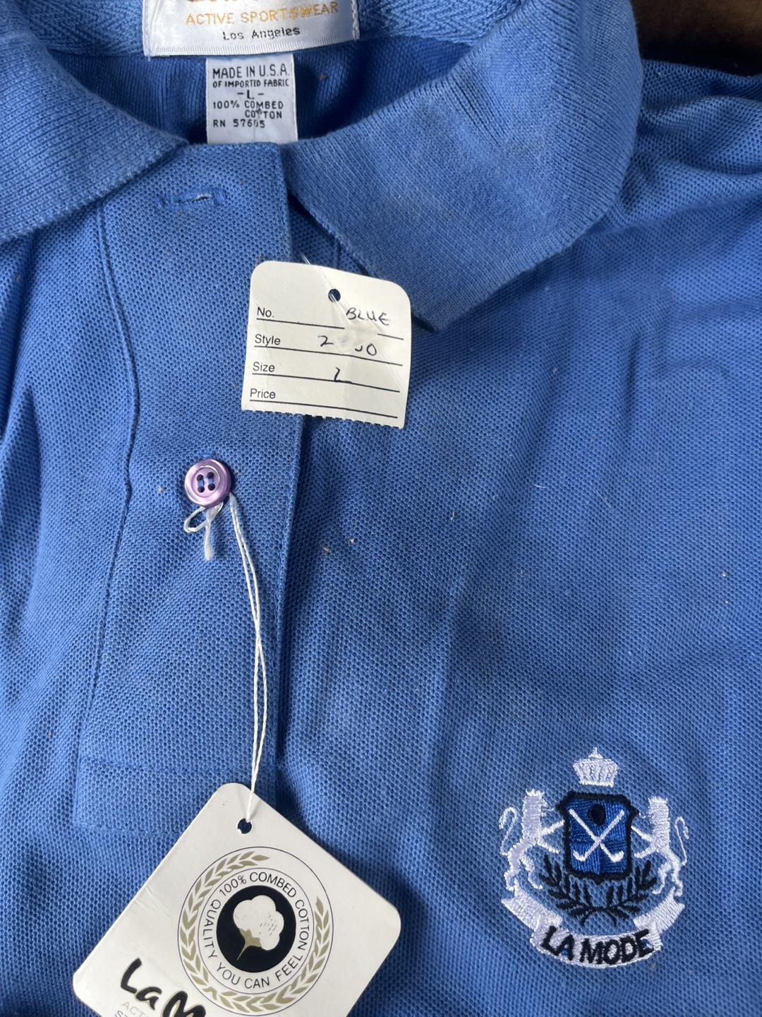 It's a size L and made of 100% combed cotton, so it's super comfy. Perfect for a casual day out or a round of golf!