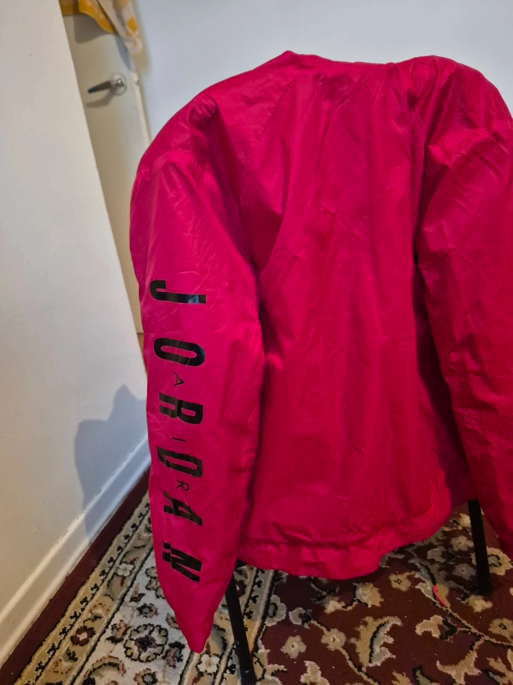 Selling a Jordan pink jacket! It's in great condition and perfect for adding a pop of colour to your wardrobe. The jacket features the Jordan logo on the sleeve. Feel free to reach out if you have any questions!