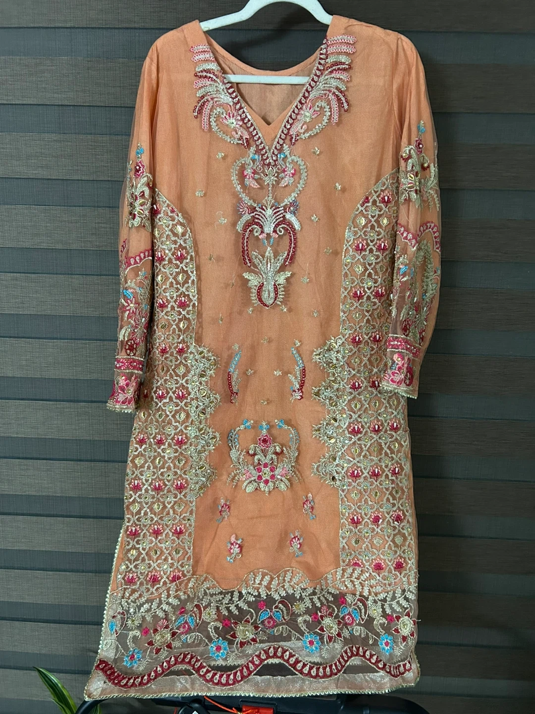 Buy & SellNew Embroidered Peach Salwar KameezNew Embroidered Peach Salwar Kameez$54Beautiful peach-coloured salwar kameez with intricate embroidery. Perfect for special occasions!ConditionNewWHERE TO MEETCheck LocationView MapSELLERJiaNorthwood Park181 review0 chats·0 favorites·63 viewsSEND CHAT TO SELLERHi Jia! I’m interested in your listing.Hi Jia! I’m interested in your listing.Get the Karrot app to chatSign In to chat