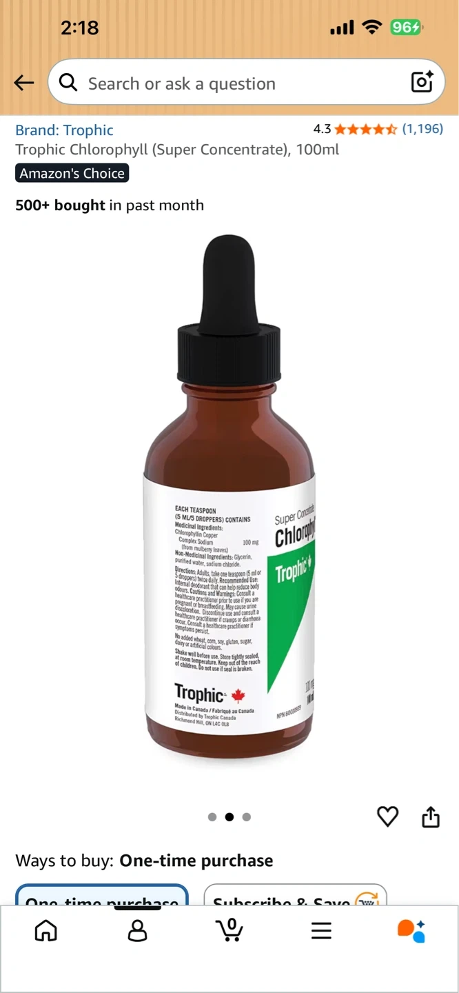 Trophic Super Concentrate Chlorophyll liquid. Comes in a 100ml amber glass bottle with a dropper. Barely used. Still pretty full