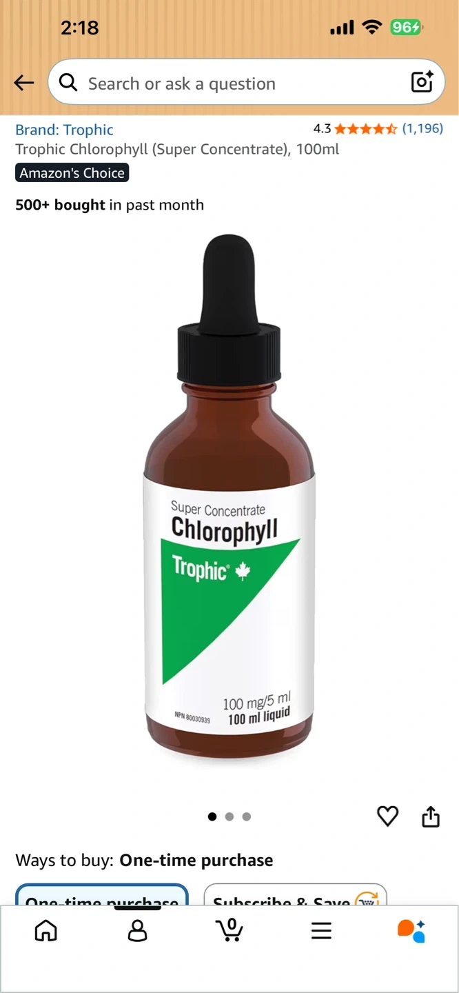 Trophic Super Concentrate Chlorophyll liquid. Comes in a 100ml amber glass bottle with a dropper. Barely used. Still pretty full