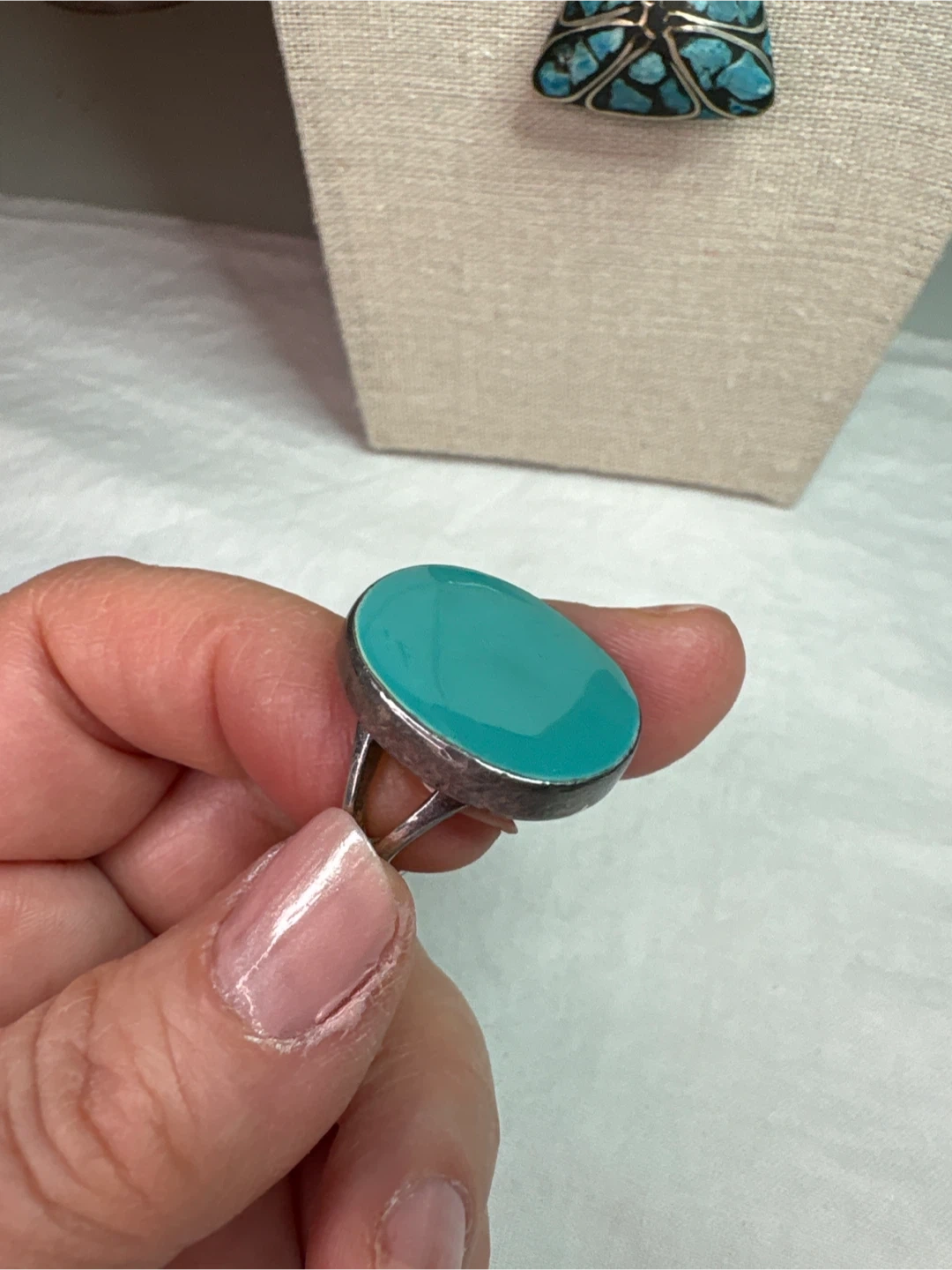 Sterling silver ring with turquoise coloured enamelling. Perfect for adding a pop of colour to any outfit!