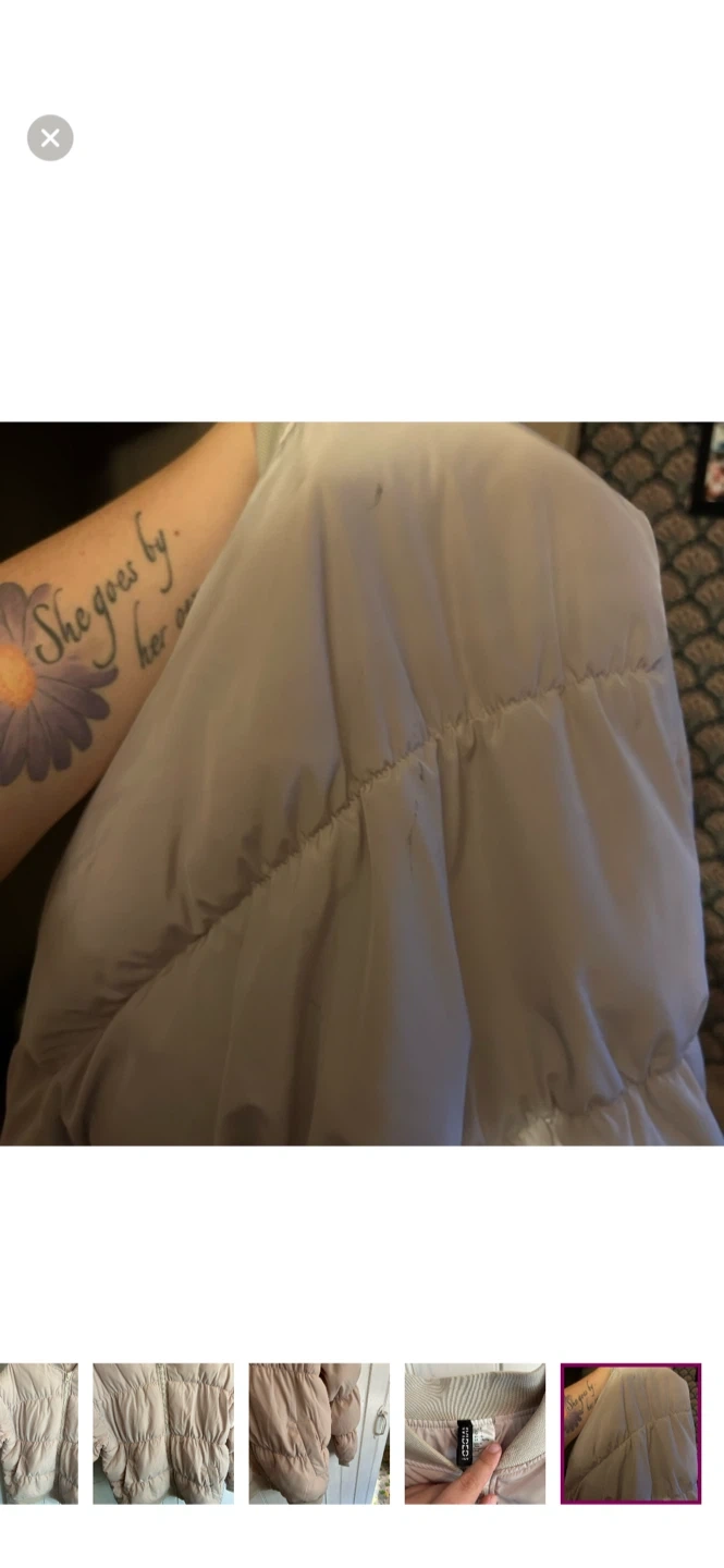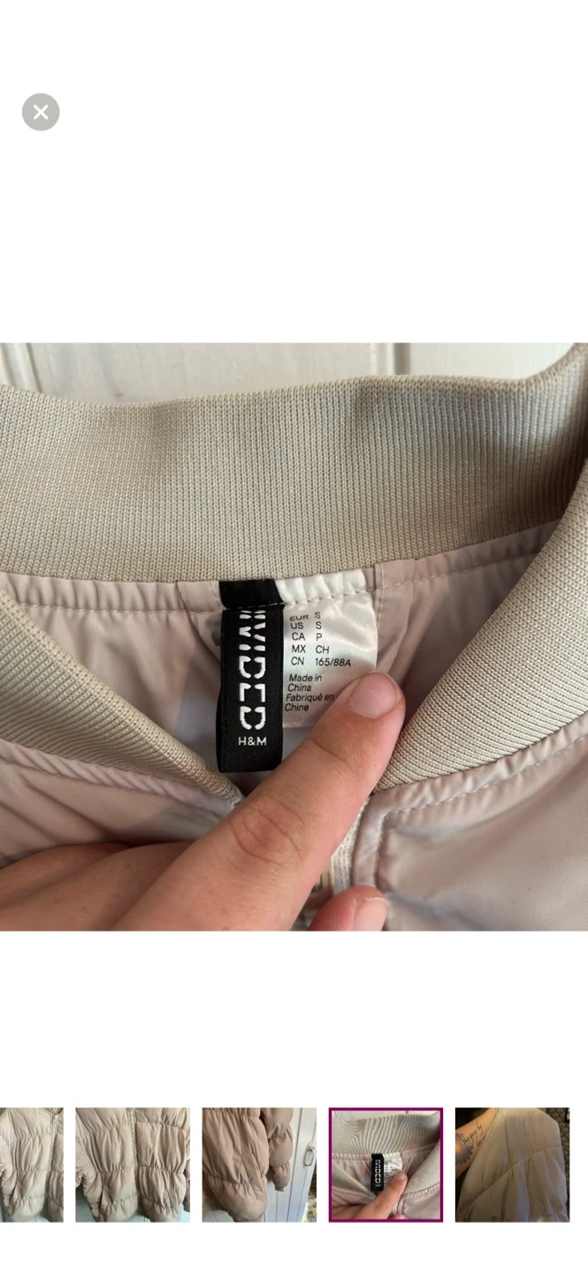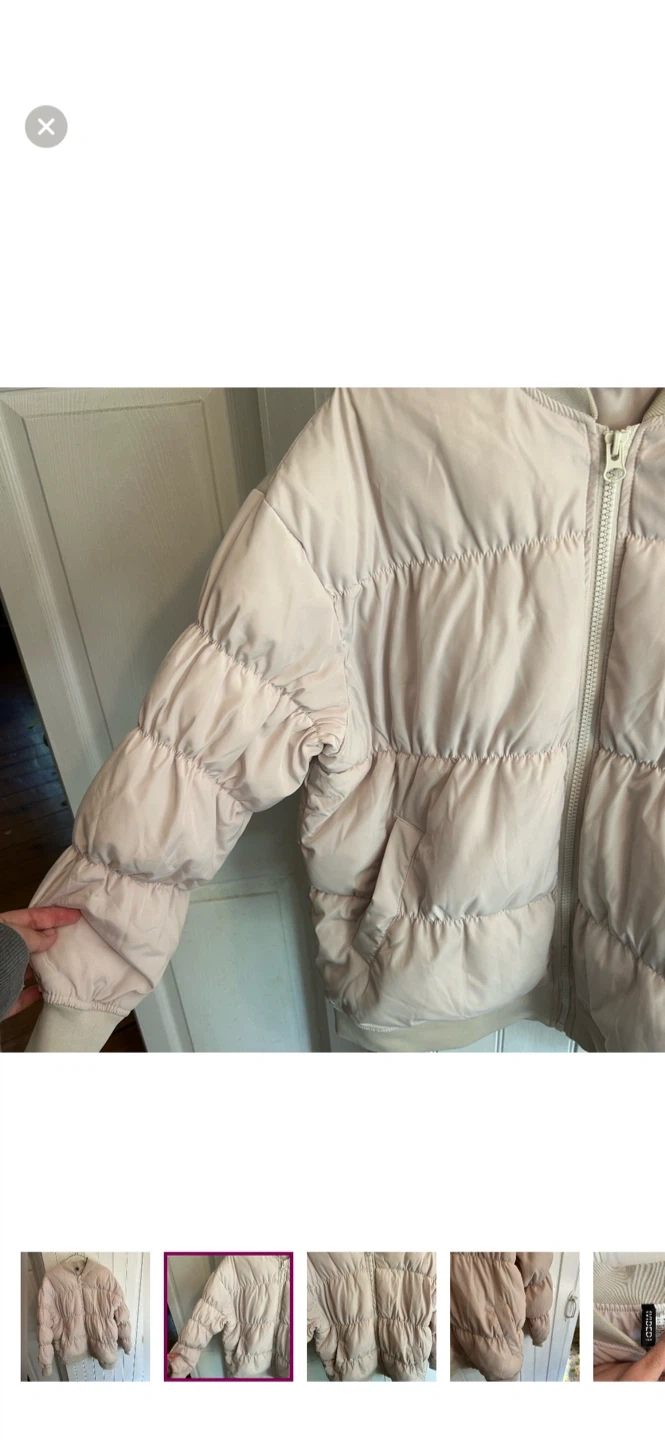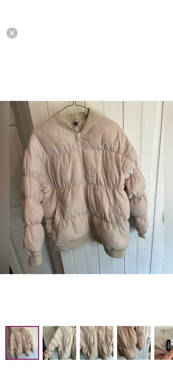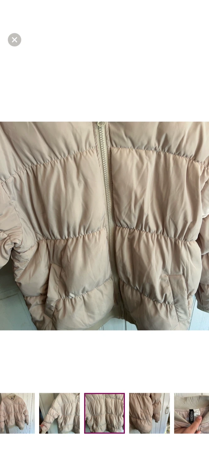 Divided brand for H&M. Tan zip up puffer jacket, hip length. Tan in colour. Size women’s small. Brand new condition minus some faint black scuff on the back, untreated.