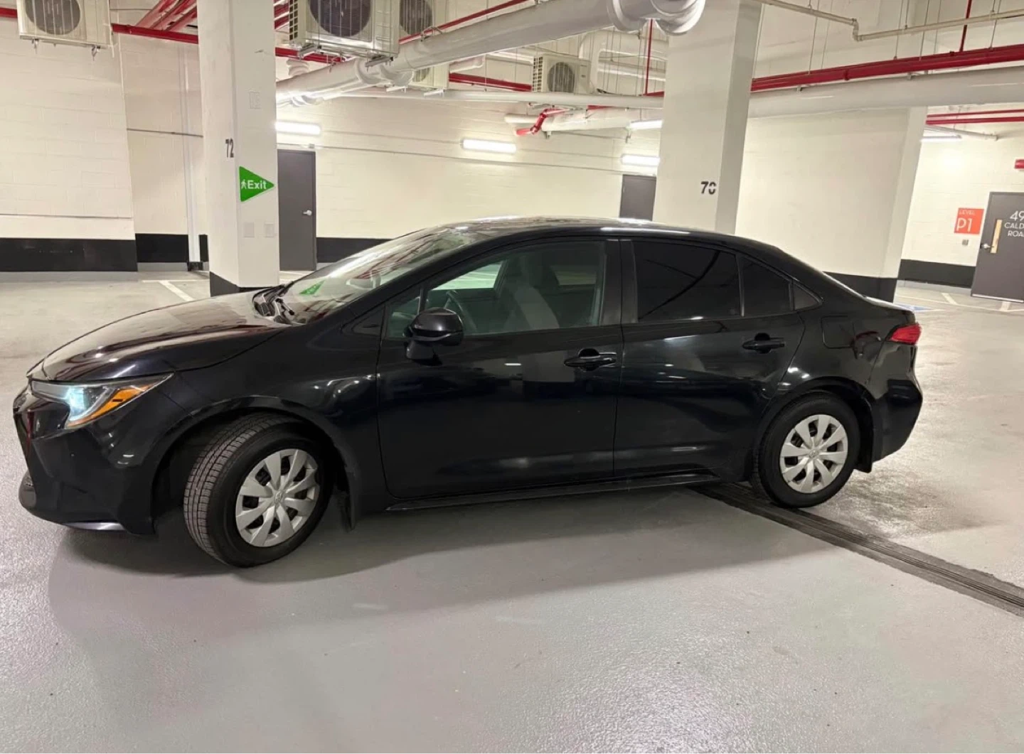 This is a black Toyota Corolla sedan. It's a four-door model with tinted windows. This vehicle is suitable for daily commutes or family use. Driven 260k car fax available has hail damage clean title