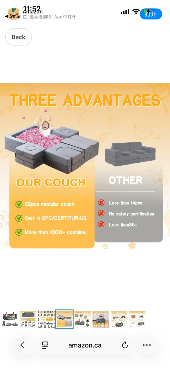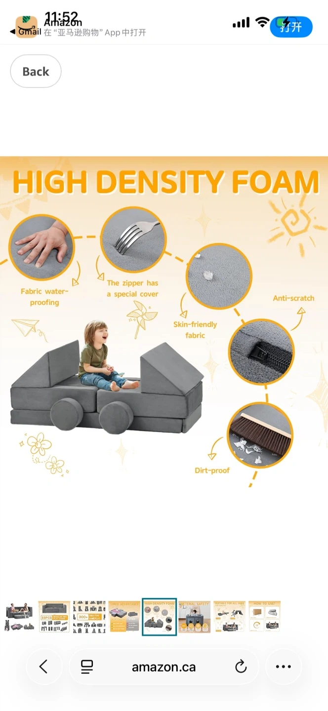 This modular kids couch comes with 22 pieces, providing endless possibilities for creative gameplay! It's Cert in CPC/CERTIPUR-US, and more than 1000+ combine. The couch is made of high-density foam, with a fabric that is waterproof and skin-friendly. It also features an anti-scratch and dirt-proof design, ensuring durability and easy maintenance