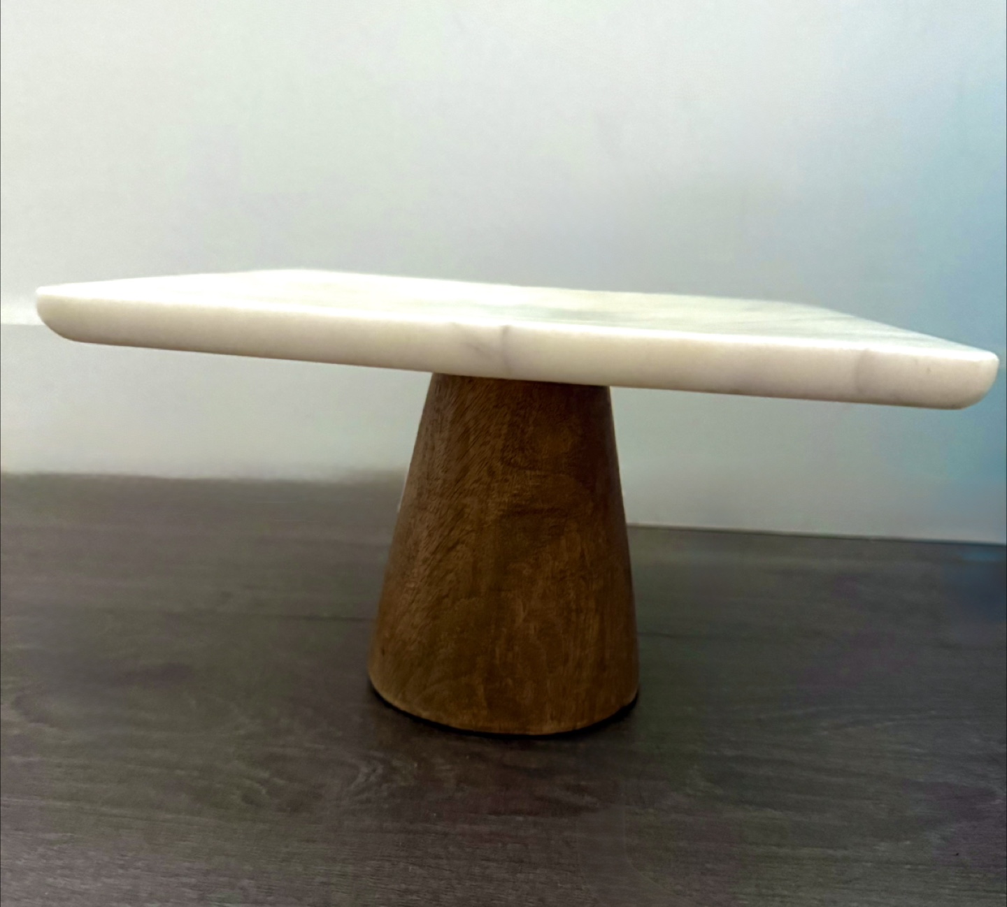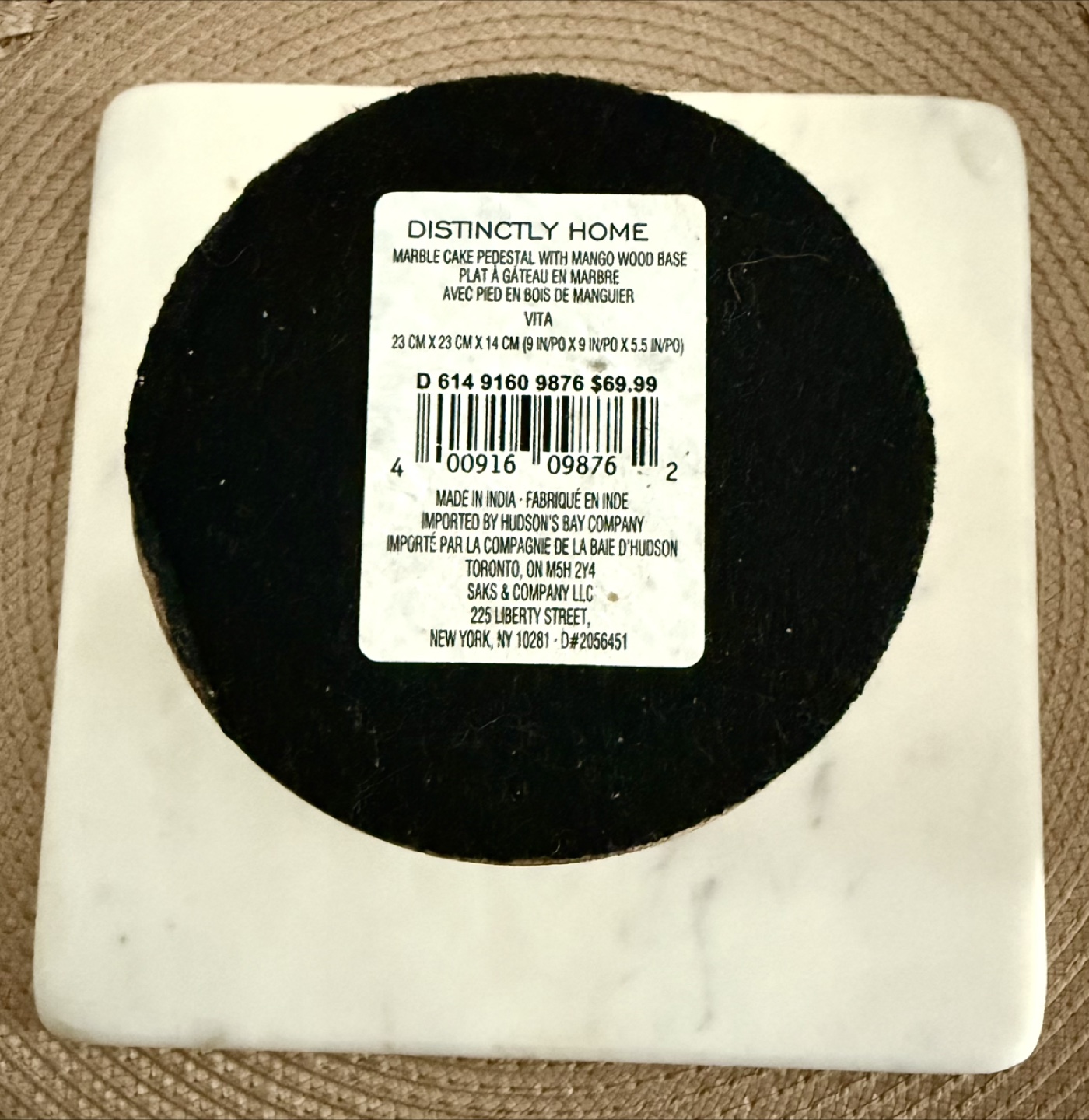 Here's a marble cake pedestal with a mango wood base from Distinctly Home! It's a lovely piece for displaying your baked goods or other treats. The pedestal measures approximately 23 cm x 23 cm x 14 cm (9 in x 9 in x 5.5 in). Originally bought for $69.99!
