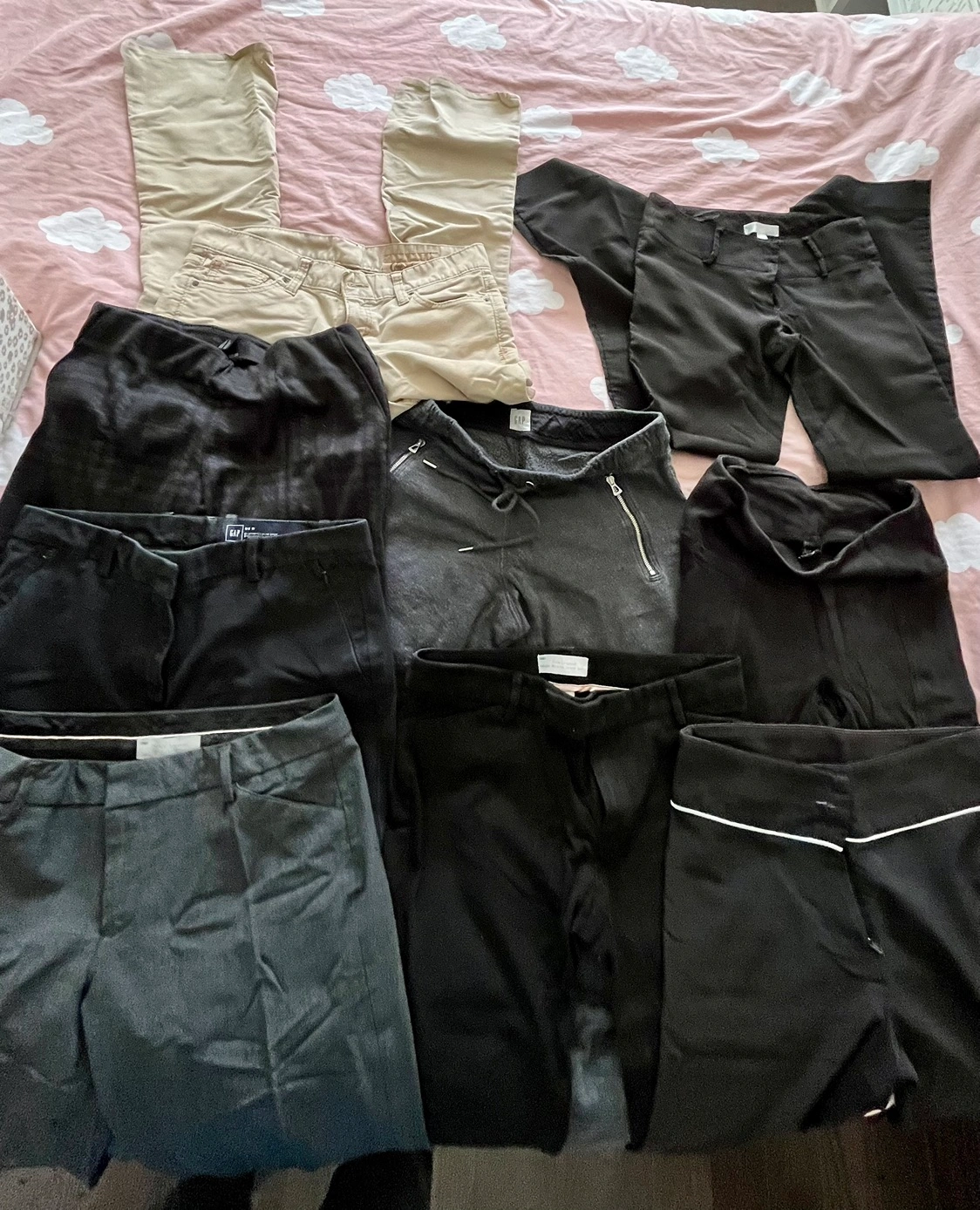 This collection of 9 pairs of pants is a great wardrobe starter for anyone starting out!
