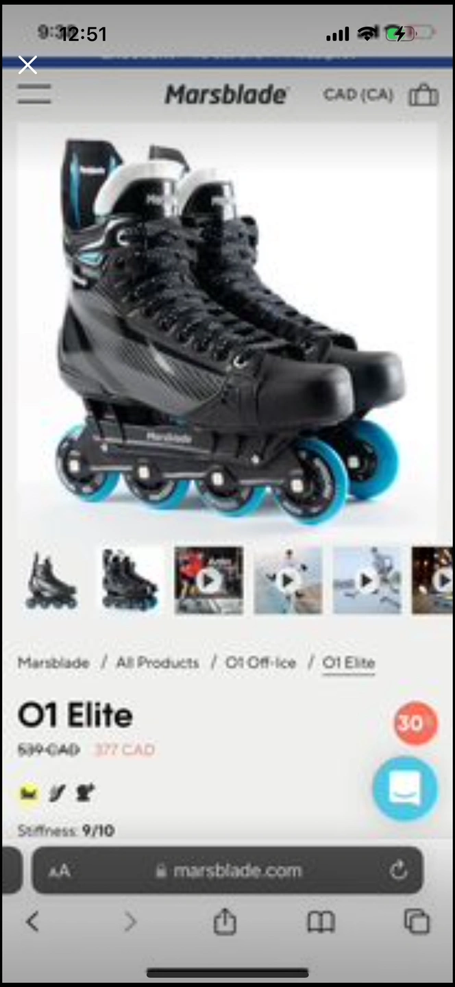 Marsblade O1 chassis complete with our Kraft Elite boot. The O1 off-ice roller skates are powered by the patented Flow Motion Technology, a unique rocker that simulates ice skating, challenge players' balance and activate the right muscles to improve on-ice performance.
