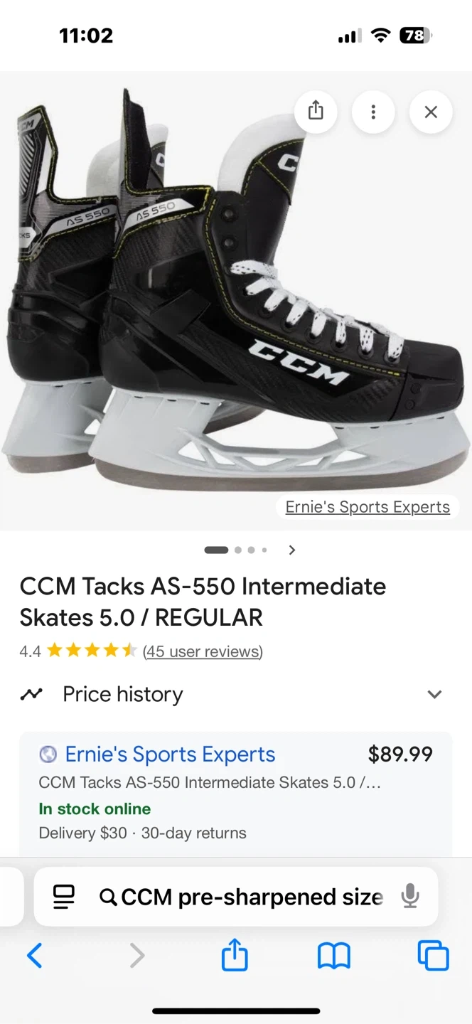 CCM Tacks AS 550 Intermediate hockey skates in size 5 with a regular fit. These skates come in black with white laces. They feature pre-sharpened blades.