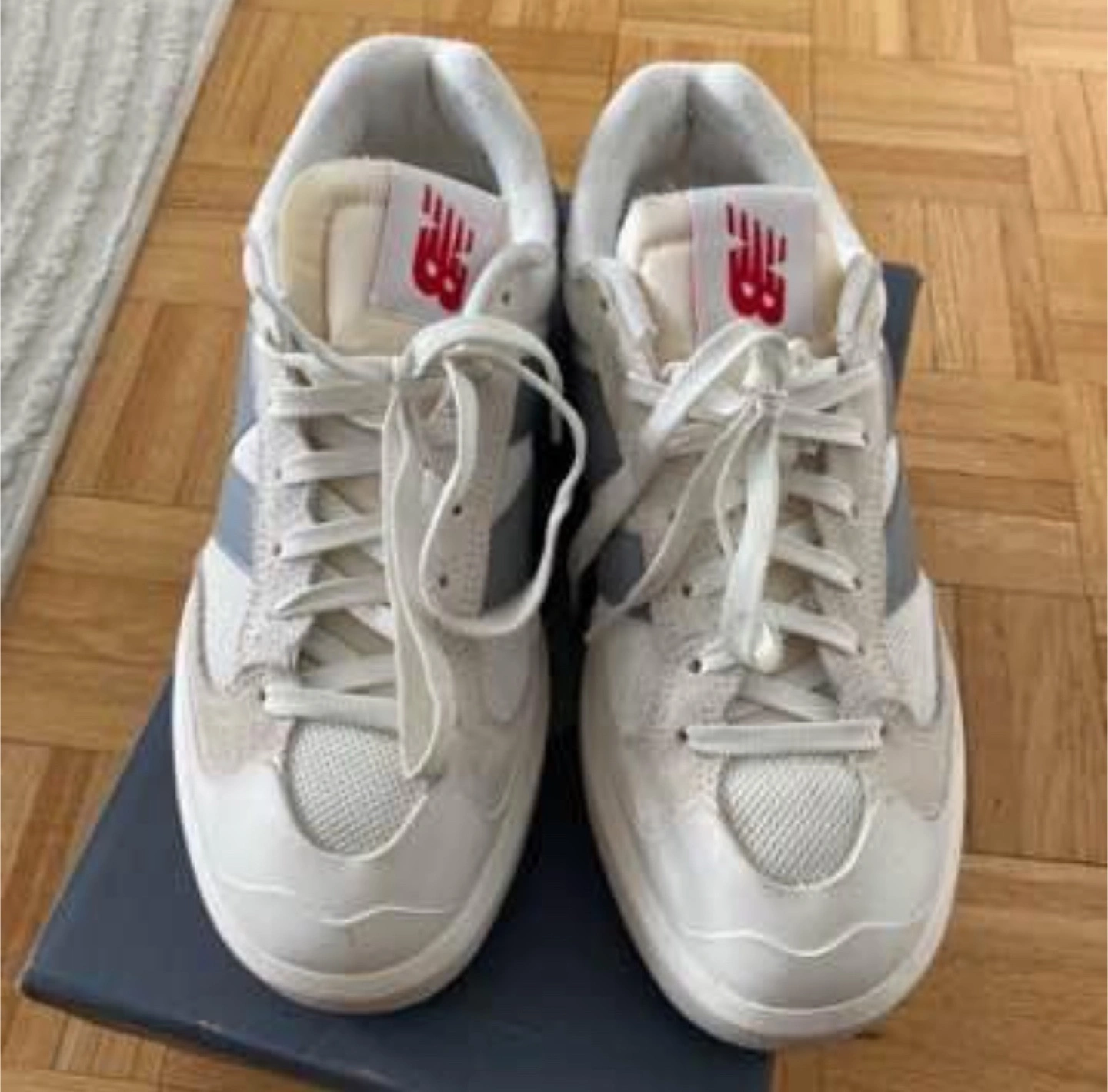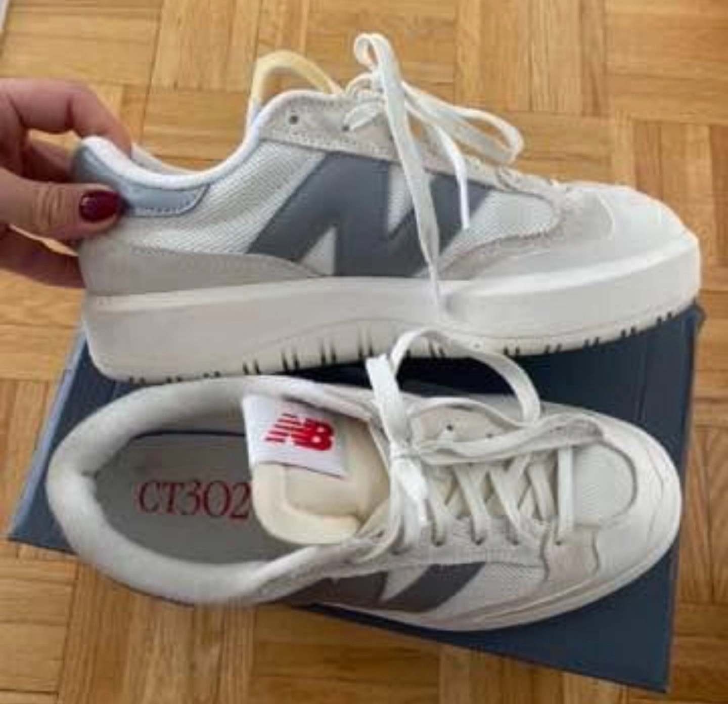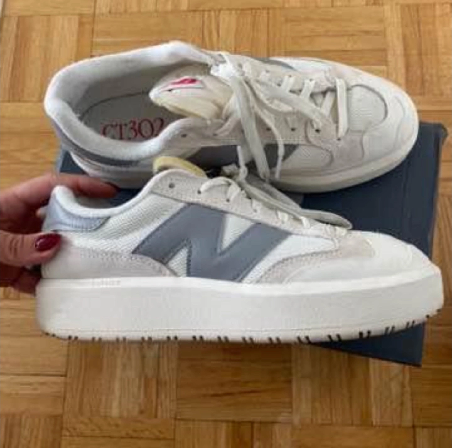 New Balance CT302 sneakers. Off-white and grey colourway. Platform style. Low-top design. Lace-up closure.