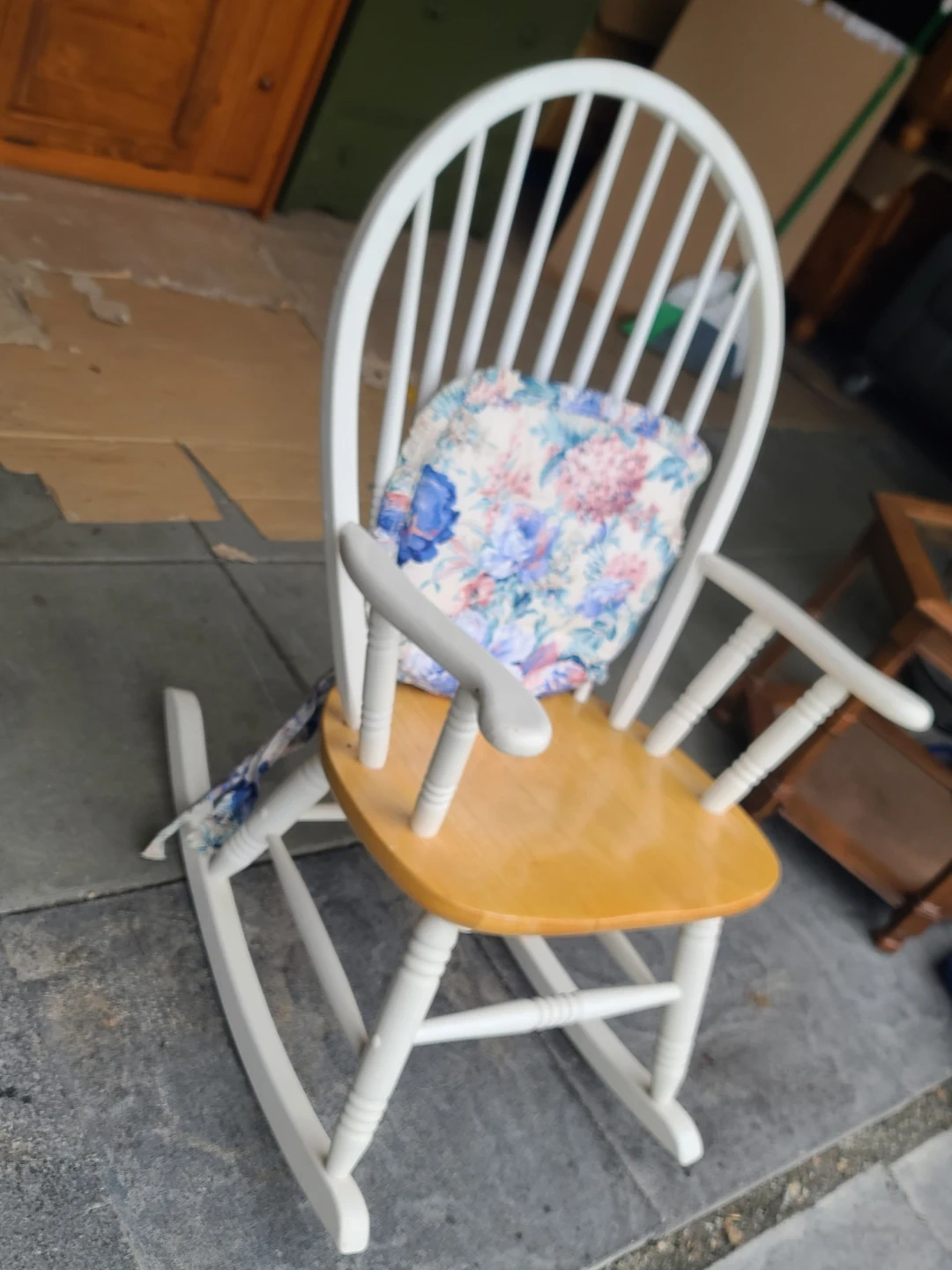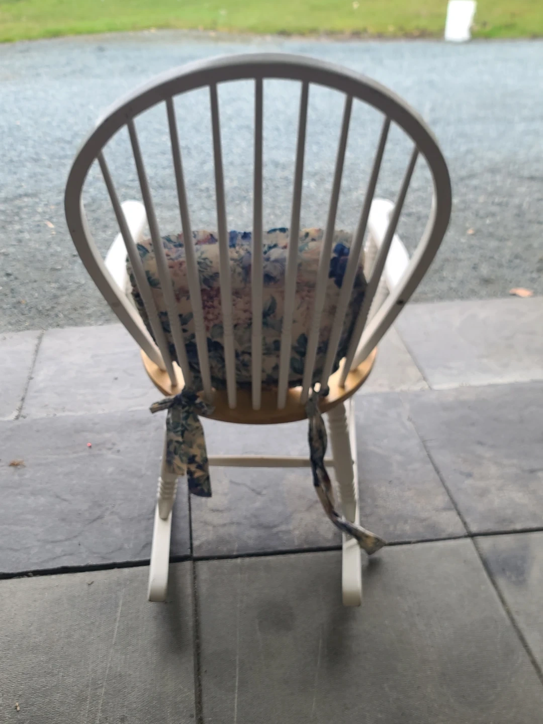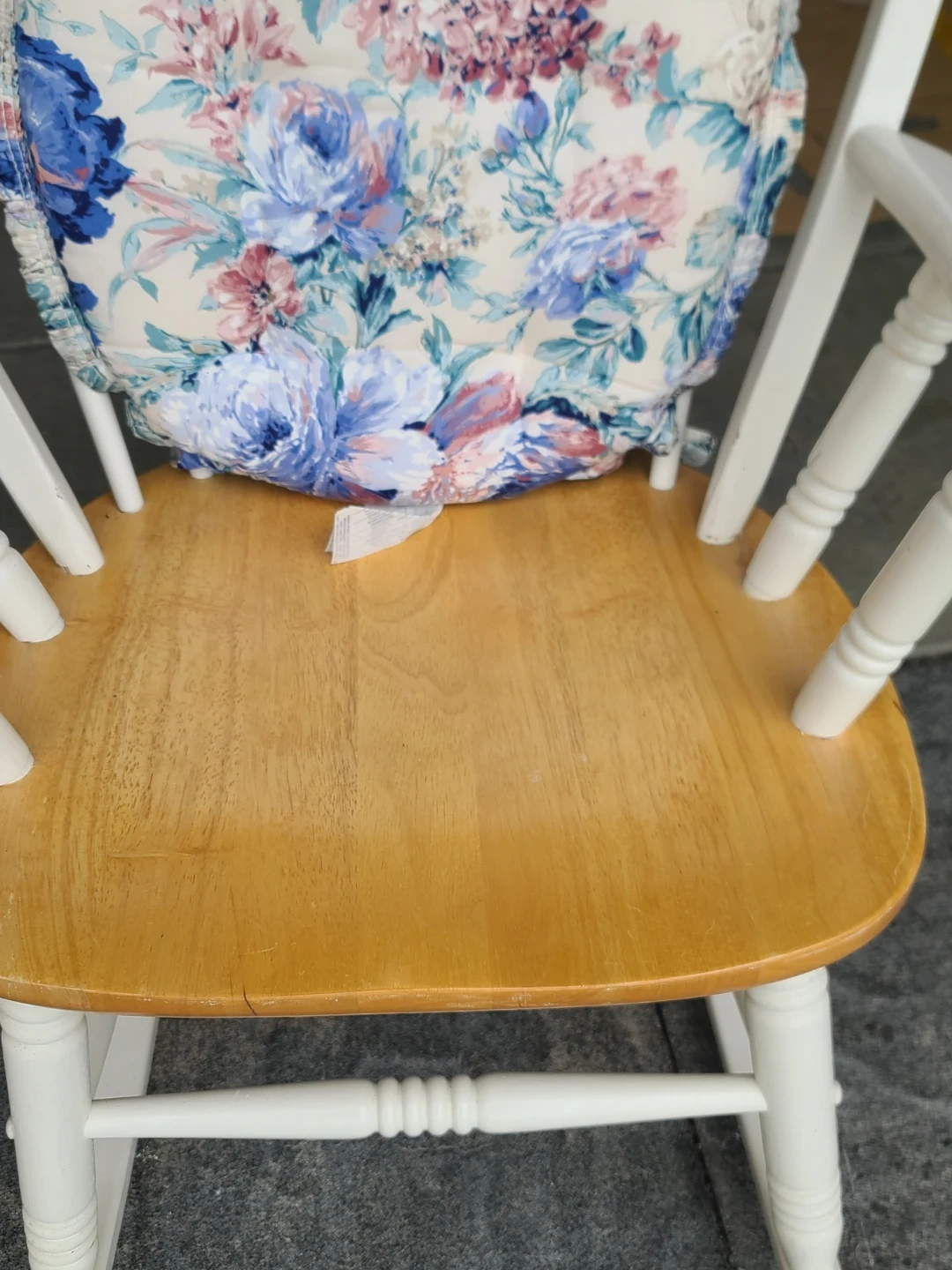 White Spindle Rocking Chair with Floral Cushion