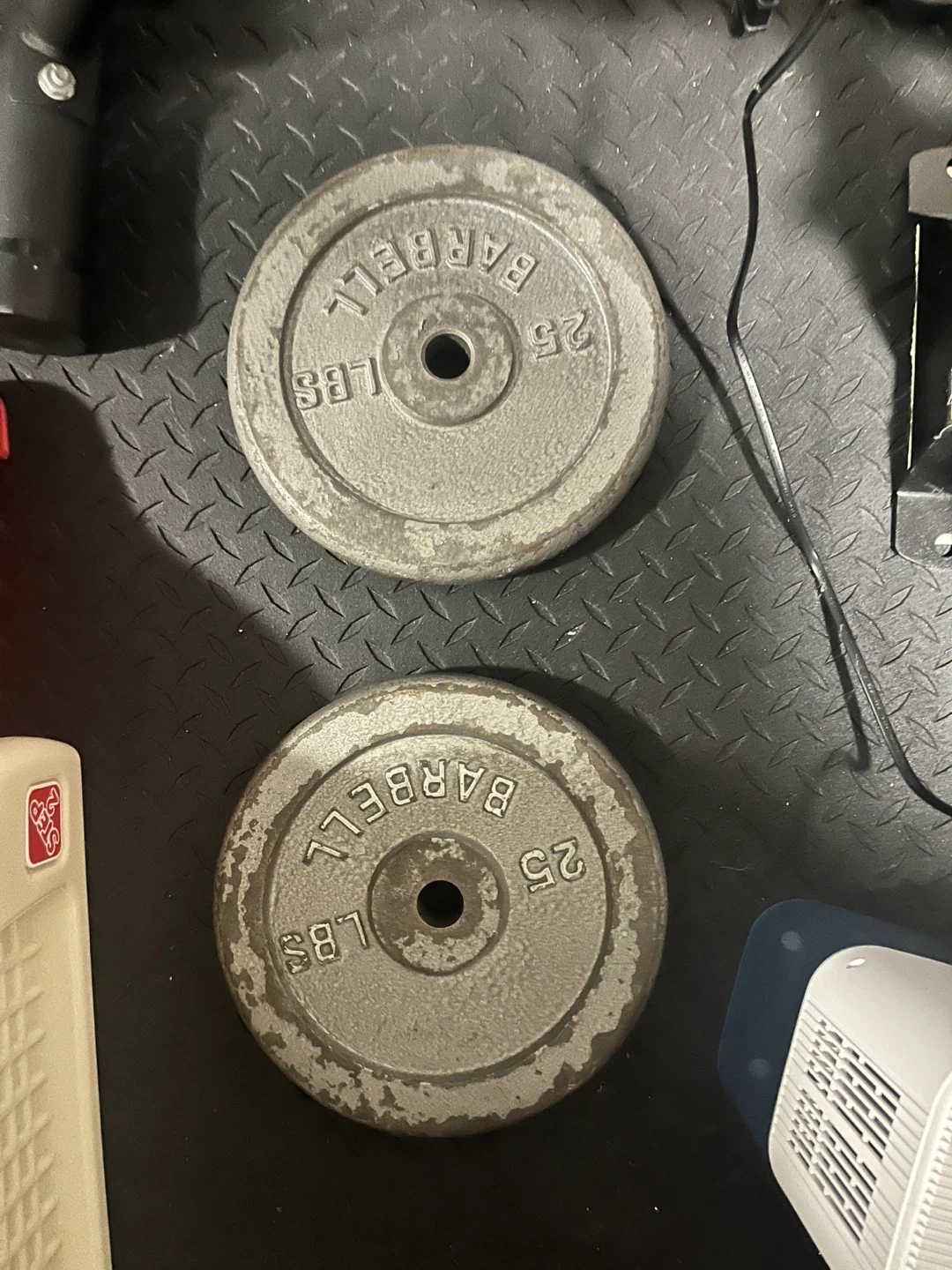 Buy & Sell2 x 25 LBS Barbell Weight Plates2 x 25 LBS Barbell Weight Plates$37Two 25 pound barbell weight plates. Metal construction. These plates add weight to your barbell for strength training.WHERE TO MEETLeslie amd elginView MapSELLERDanLeslie Valley100 reviews0 chats·0 favorites·5 viewsSEND CHAT TO SELLERHi Dan! I’m interested in your listing.Hi Dan! I’m interested in your listing.Get the Karrot app to chatSign In to chat