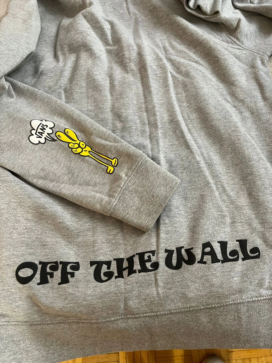Grey Vans hoodie with "No Bad Trips Better Daze" graphic on the front and "Off The Wall" logo on the back. Features a drawstring hood and front pouch pocket. Cotton blend material. Amazing material and fit.
