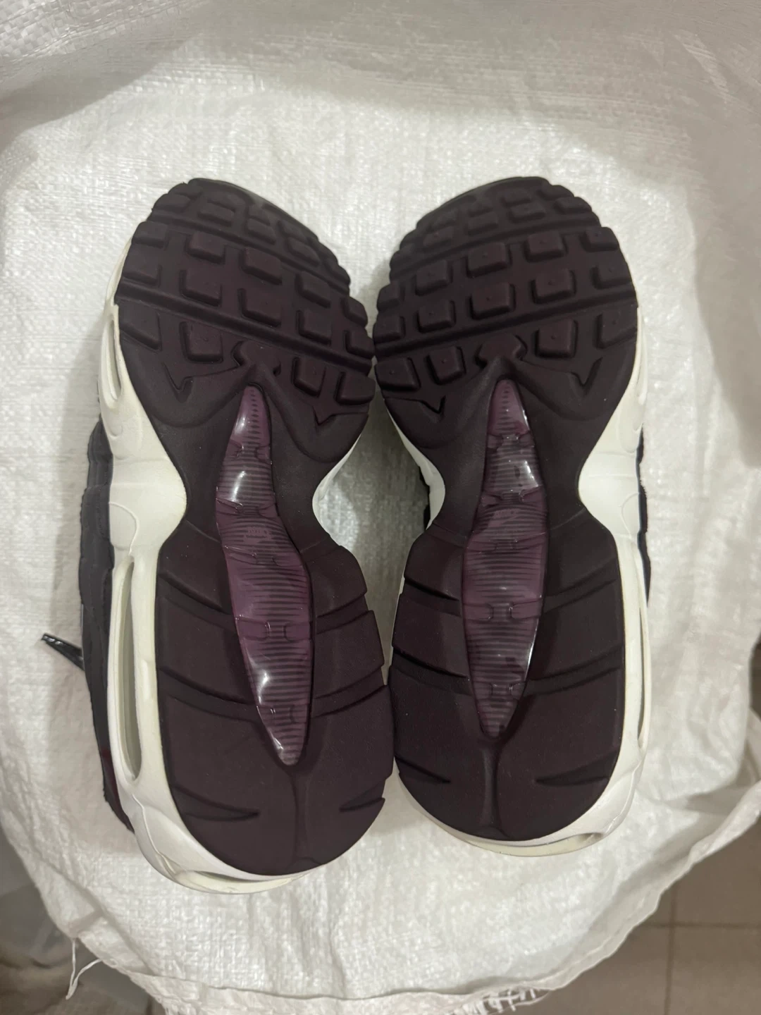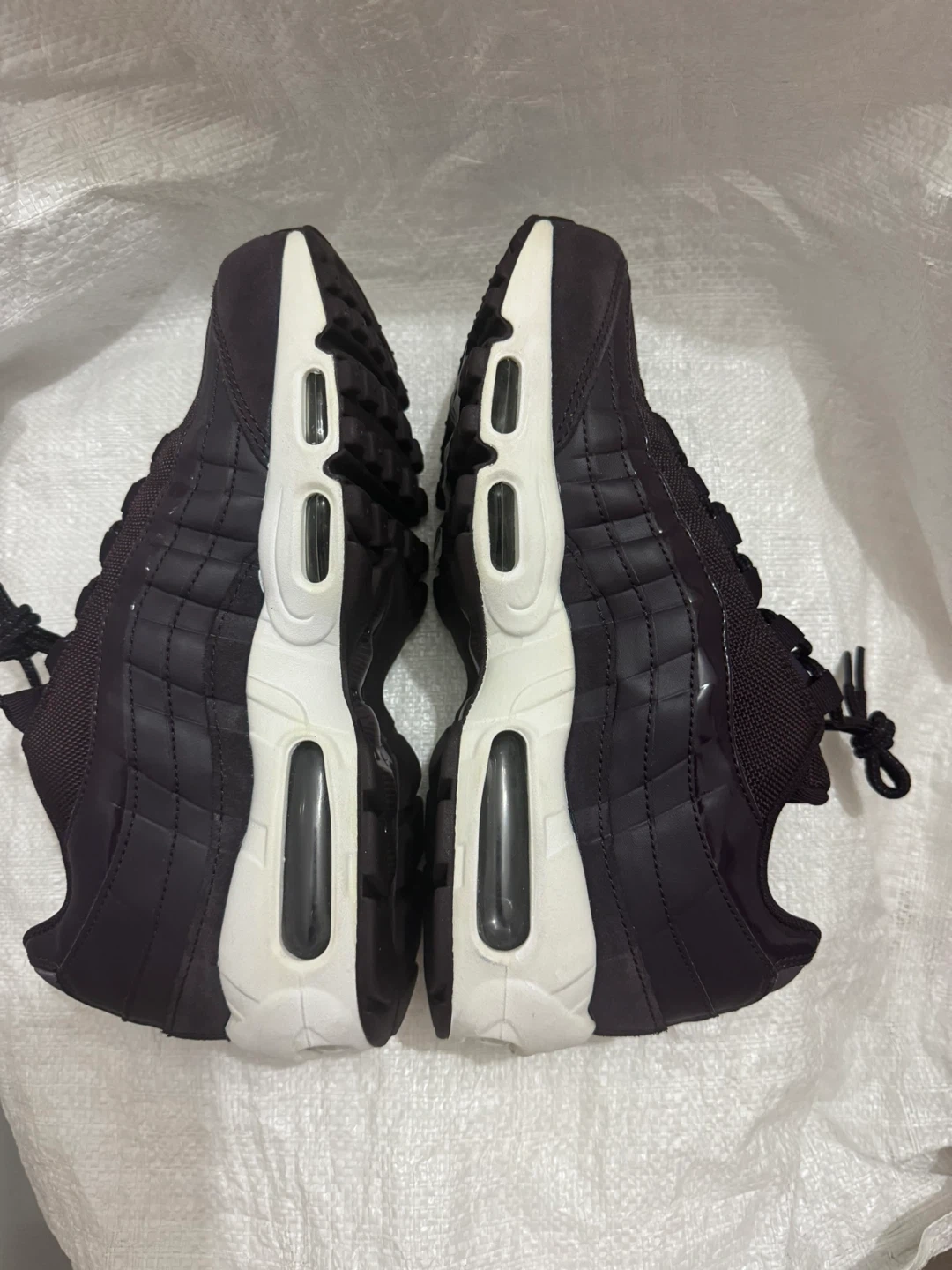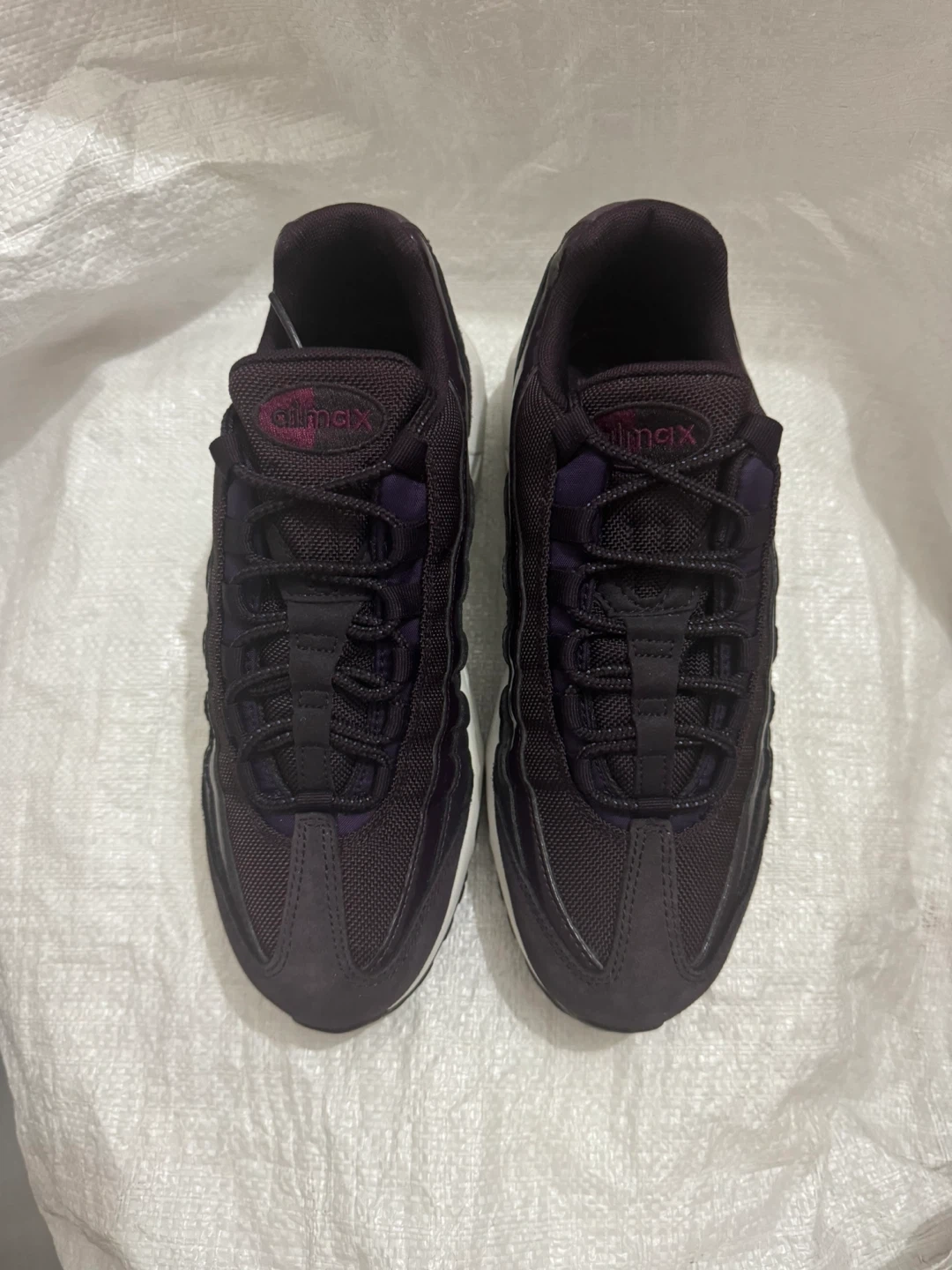 These Nike Air Max 95 sneakers are a deep purple colour with white soles. They feature the classic Air Max cushioning for comfort. Perfect for everyday wear!