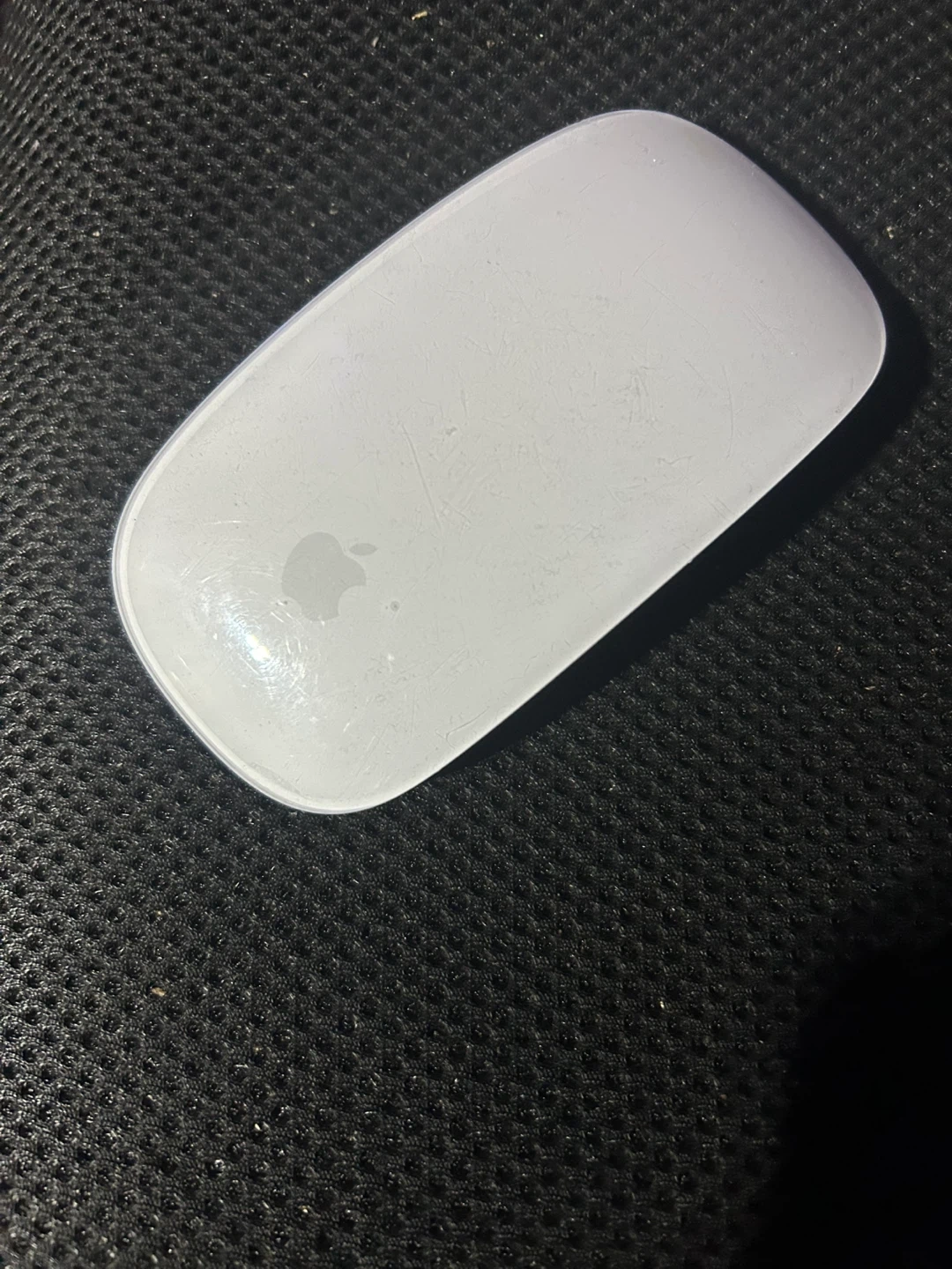 This is an Apple Magic Mouse in white. It's a wireless mouse with a rechargeable battery. The smooth surface makes it comfortable to use. Asking 100