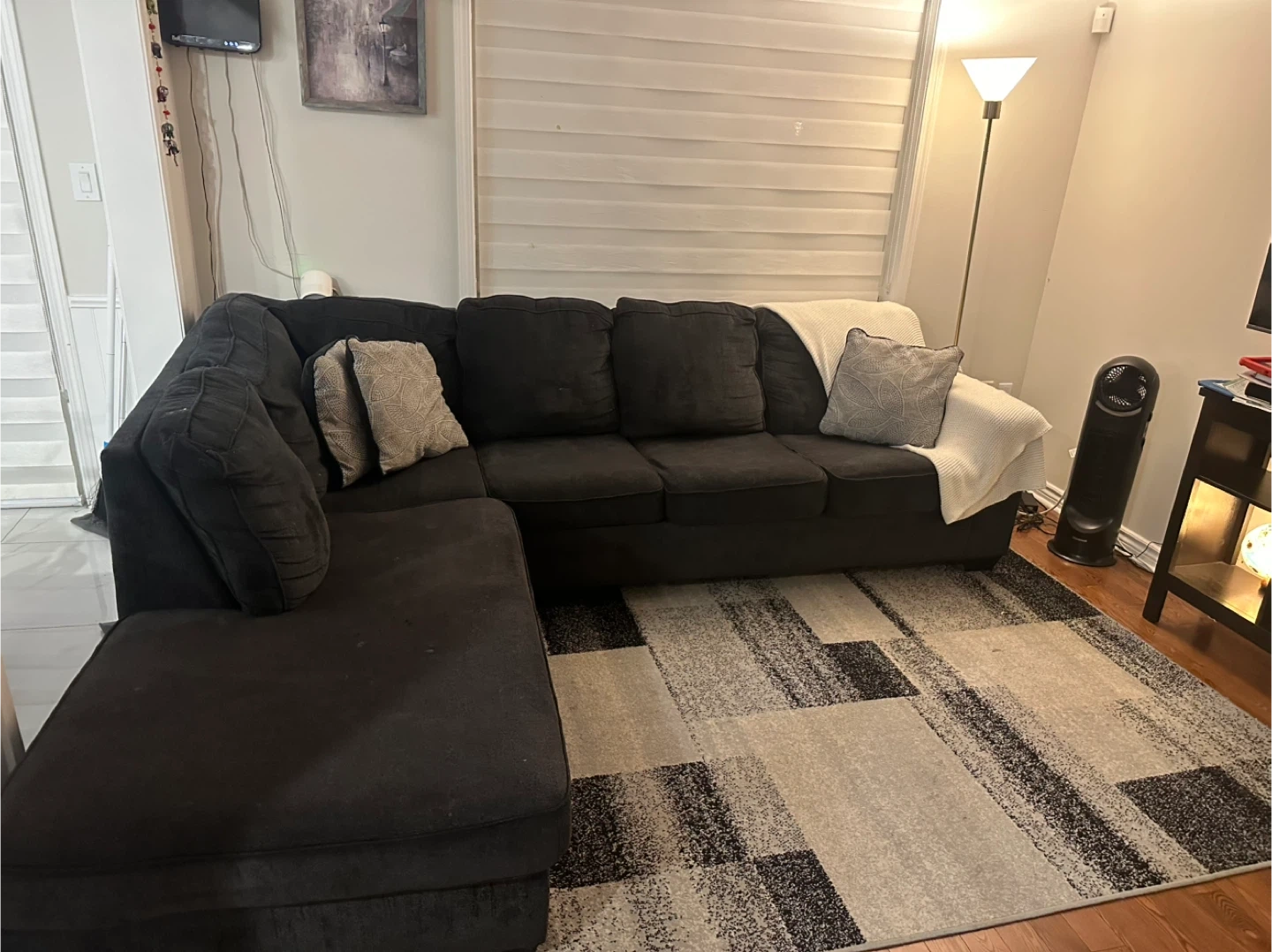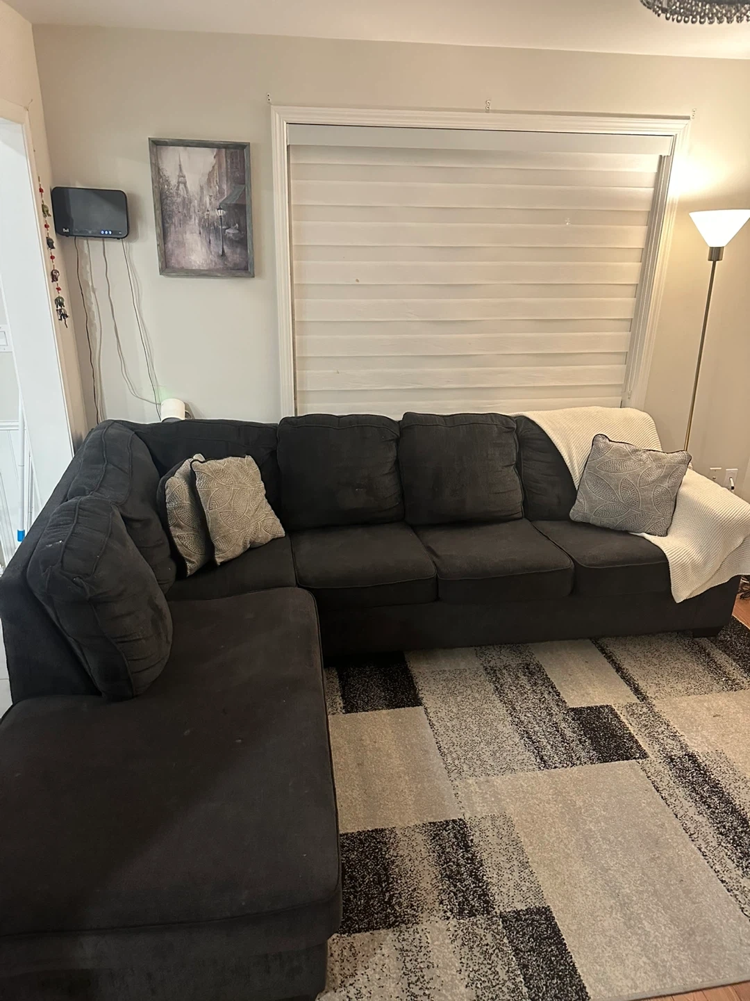 Buy & SellBlack Sectional CouchBlack Sectional Couch$300Comfortable black sectional couch. It has plush cushions and includes decorative throw pillows. The chaise can be configured on either side.ConditionGoodWHERE TO MEETBussel CrescentView MapSELLERverifiedShabiBussel Crescent681 review3 chats·0 favorites·58 viewsSEND CHAT TO SELLERHi Shabi! I’m interested in your listing.Hi Shabi! I’m interested in your listing.Get the Karrot app to chatSign In to chat