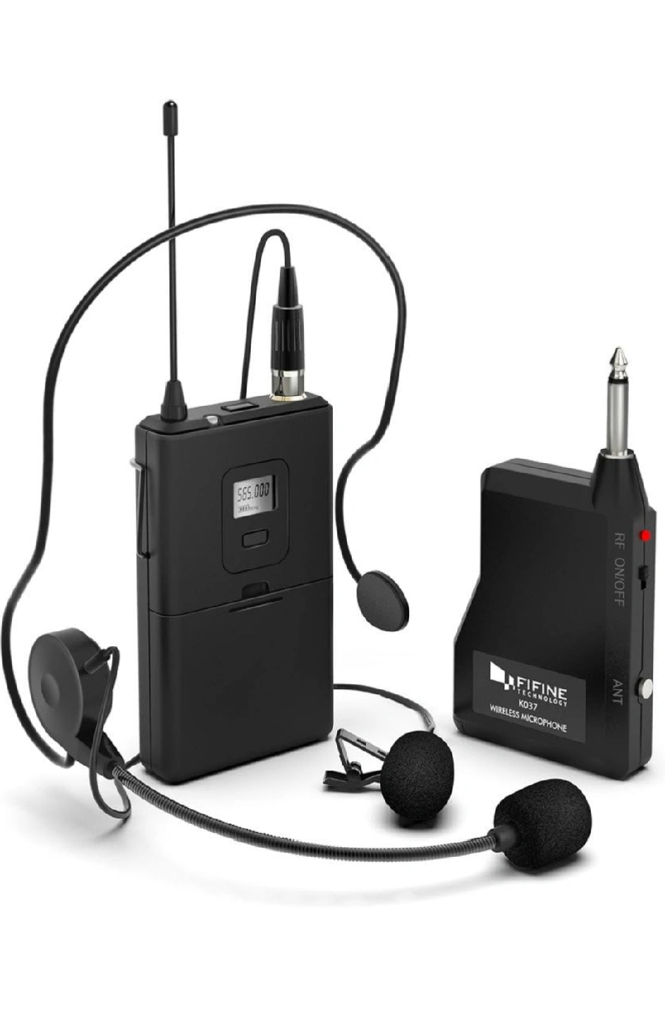 Fifine Wireless Microphone System, Wireless Microphone Set with Headset and Lavalier Lapel Mics, Beltpack Transmitter and Receiver,Ideal for Teaching, Preaching and Public Speaking Applications-K037B.