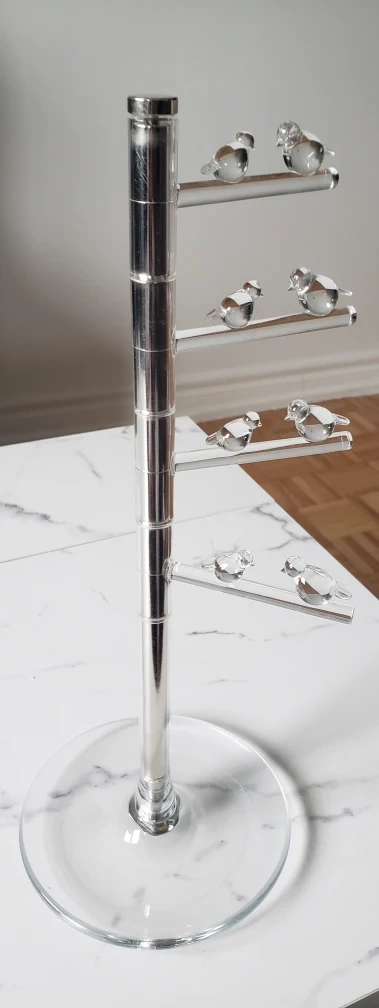 Here's a charming Umbra bird tree Jewelry stand! It's a delightful piece to add a touch of elegance to any room. Each branch is movable to help in organizing, sorting and identifying your jewelry piece of the day. It's in great condition and ready to find a new home. Cash only
