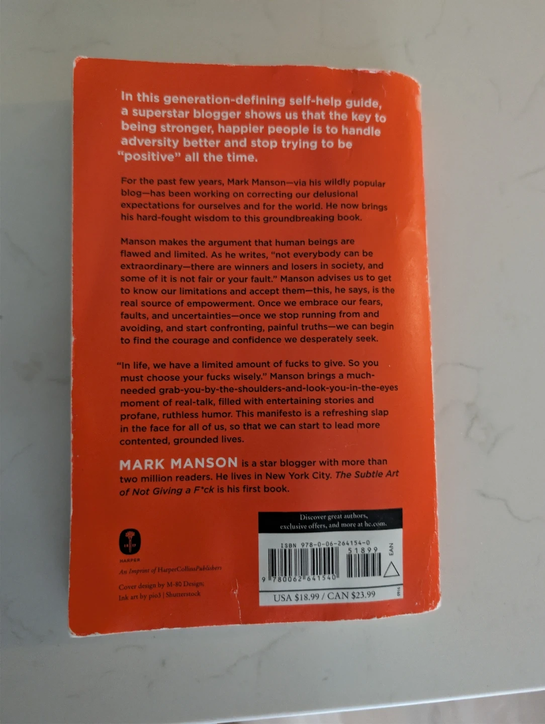 This is the self-help guide from superstar blogger Mark Manson. It helps readers handle adversity better and stop trying to be "positive" all the time. The book explores the idea that humans are flawed and offers a counterintuitive approach to living a good life.