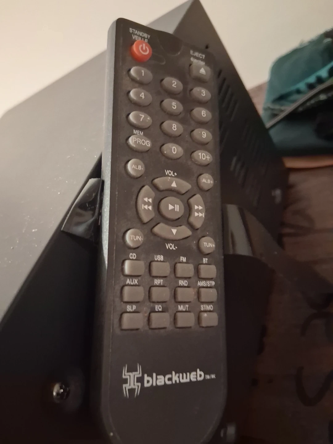 Blackweb CD micro system with remote. Includes remote and power cord. Features AM/FM radio and USB input.