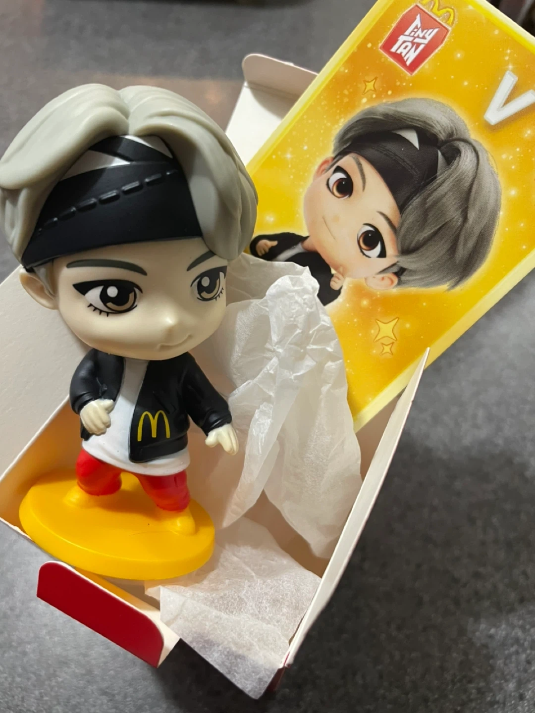 Selling a brand new, in box McDonald's BTS TinyTAN figure of V! It's never been opened (except for taking photo of it) and is in perfect condition. Great for any BTS or TinyTAN fan!