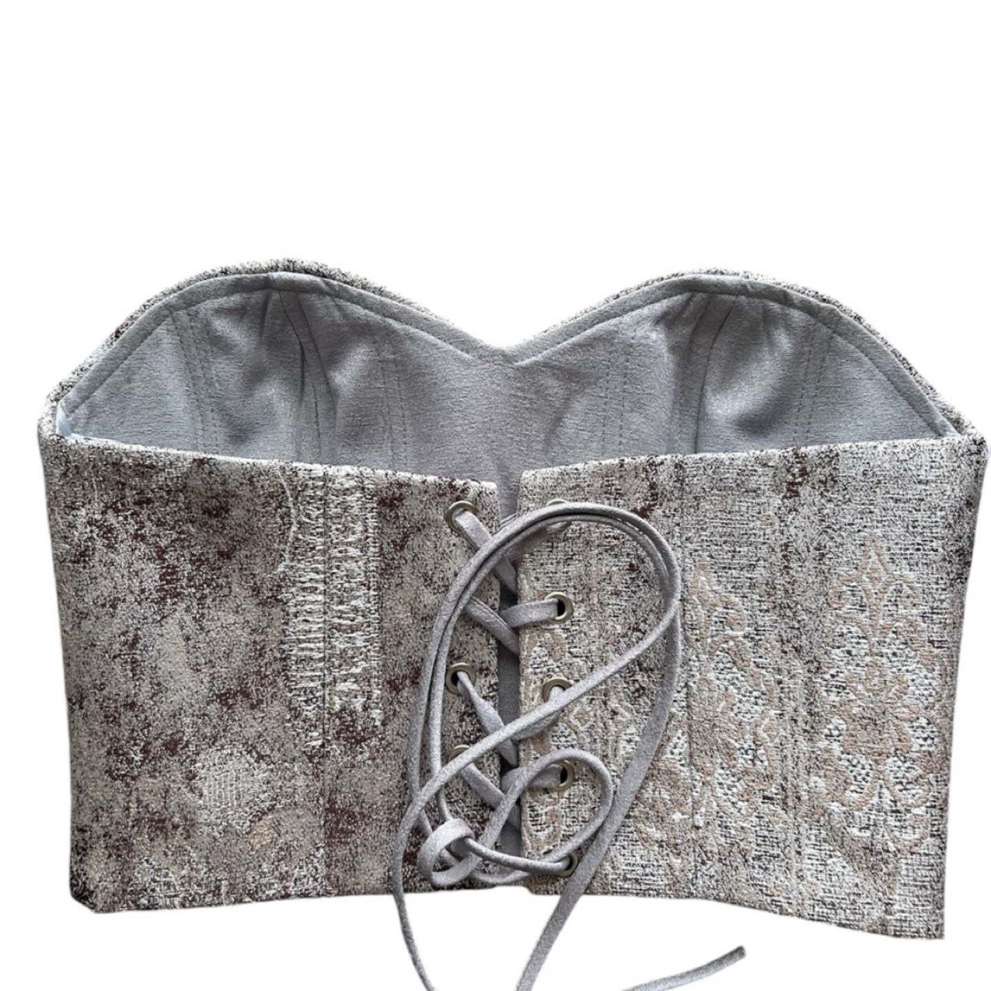 A stunning blend of sophistication and sparkle available in three exquisite colors: Pink, Beige, and Silver. Perfect for adding a touch of luxury to your wardrobe, this crop top is designed to make you shine.
