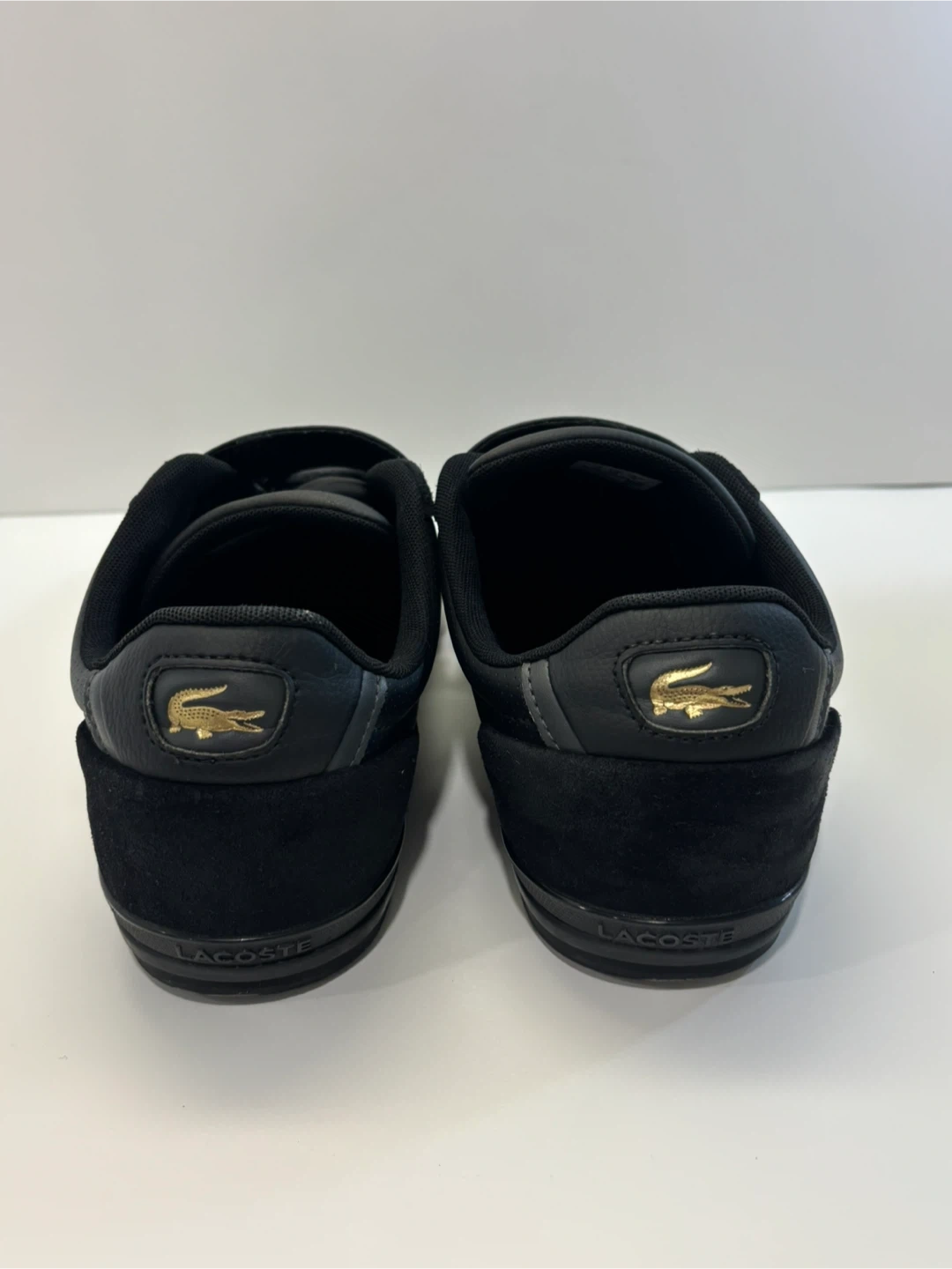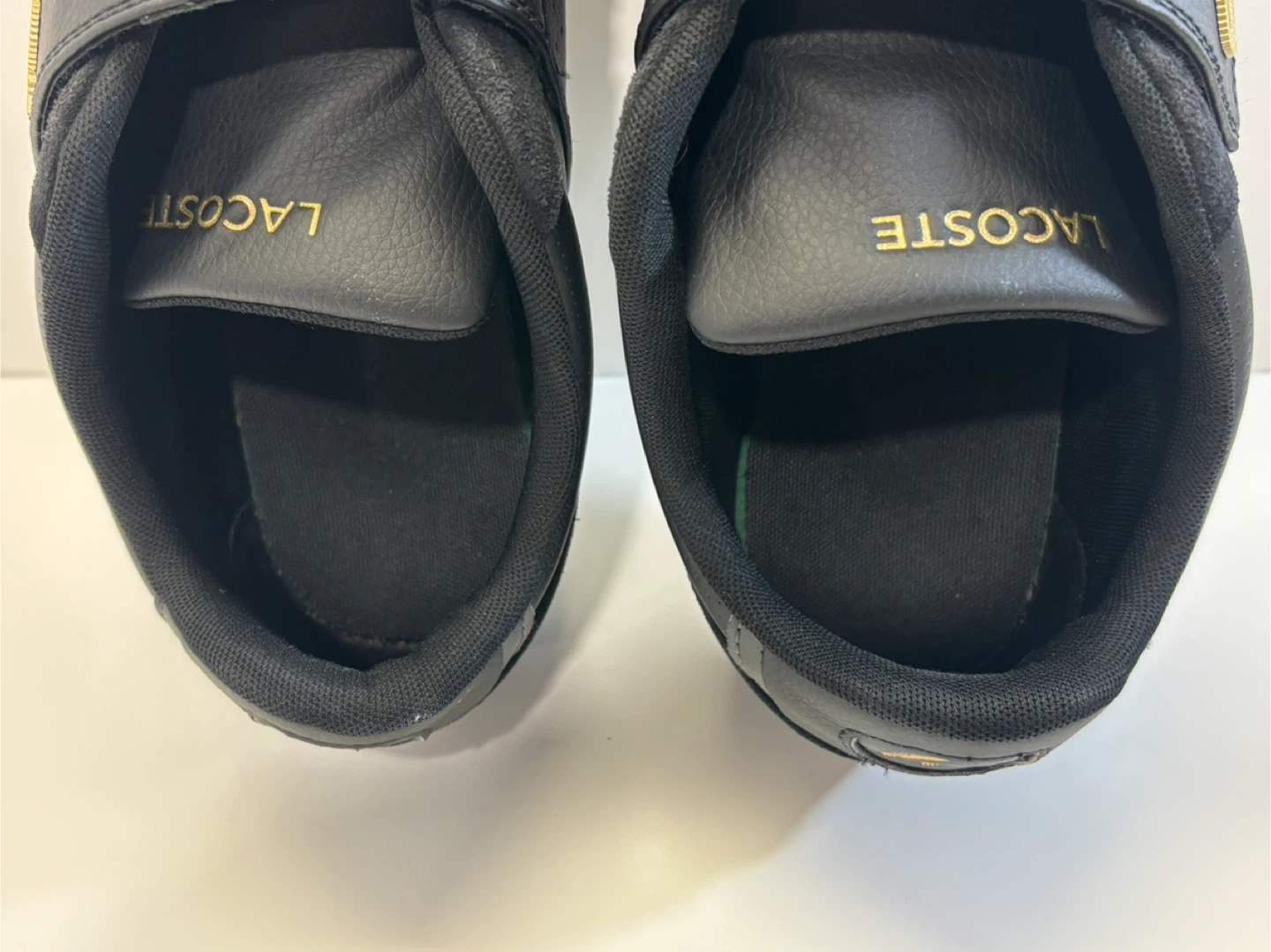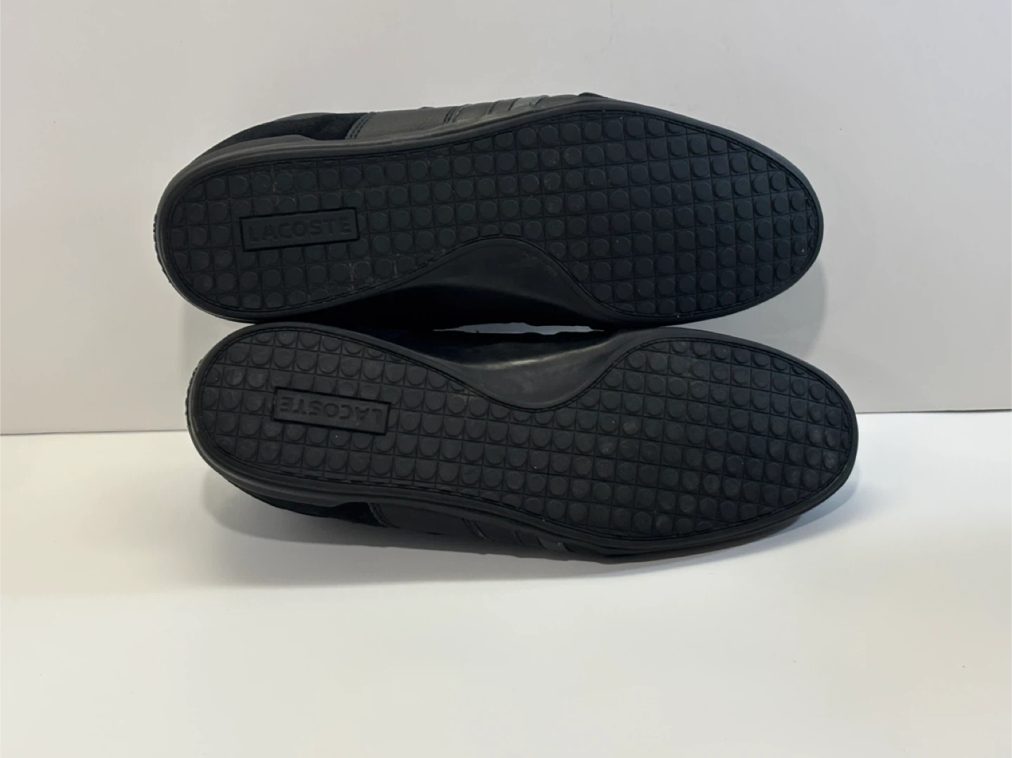 Lacoste Men's Misano Strap Sneaker men’s size 12 Retail $170+tax Clean and in like new condition ! Can also ship anywhere for $15 These are black Lacoste sneakers featuring a sleek design with velcro straps for easy on and off. They have the iconic Lacoste crocodile logo on the side and heel. The shoes are made of leather and suede. The Misano's simple silhouette is elevated for the new season with adaptable hook and loop strap fastenings. Soft suede uppers feature underlays crafted from net-inspired, perforated leather to inject sports heritage. An extra mesh hit below the strap adds technical flair. The distinctive gold crocodile sits on the strap and heel, drawing the eye and infusing an everyday style with effortless elegance.